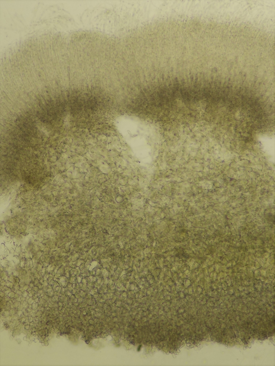 • Felli, danke für deine ausführliche Antwort nebst Beschriftung! Das hilft mir wirklich weiter, denn ich hätte das dunkle Subhymenium für die Textura intricata gehalten... ==Gnolm10 danke auch fürs Raussuchen des Parts in PdS, deren Beschreibung von P. micropus passt tatsächlich gut auf meinen Fund!