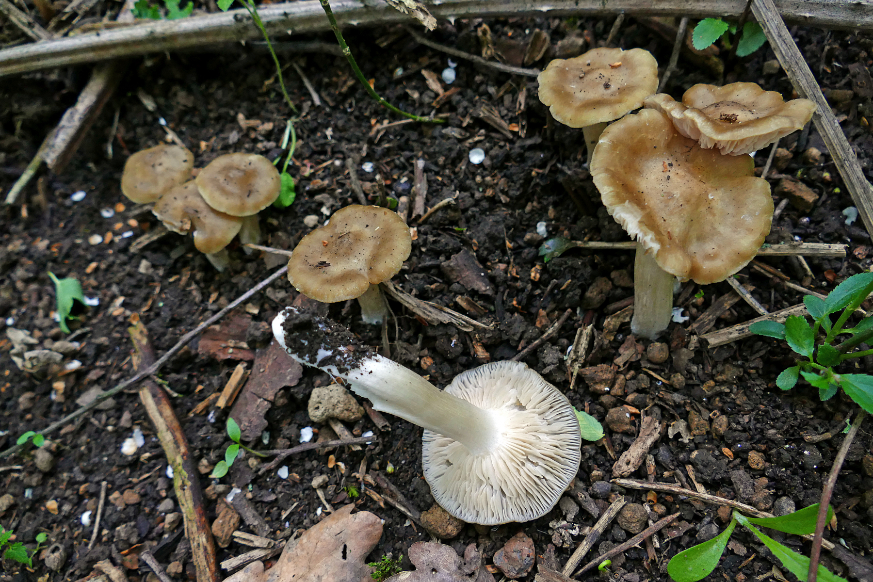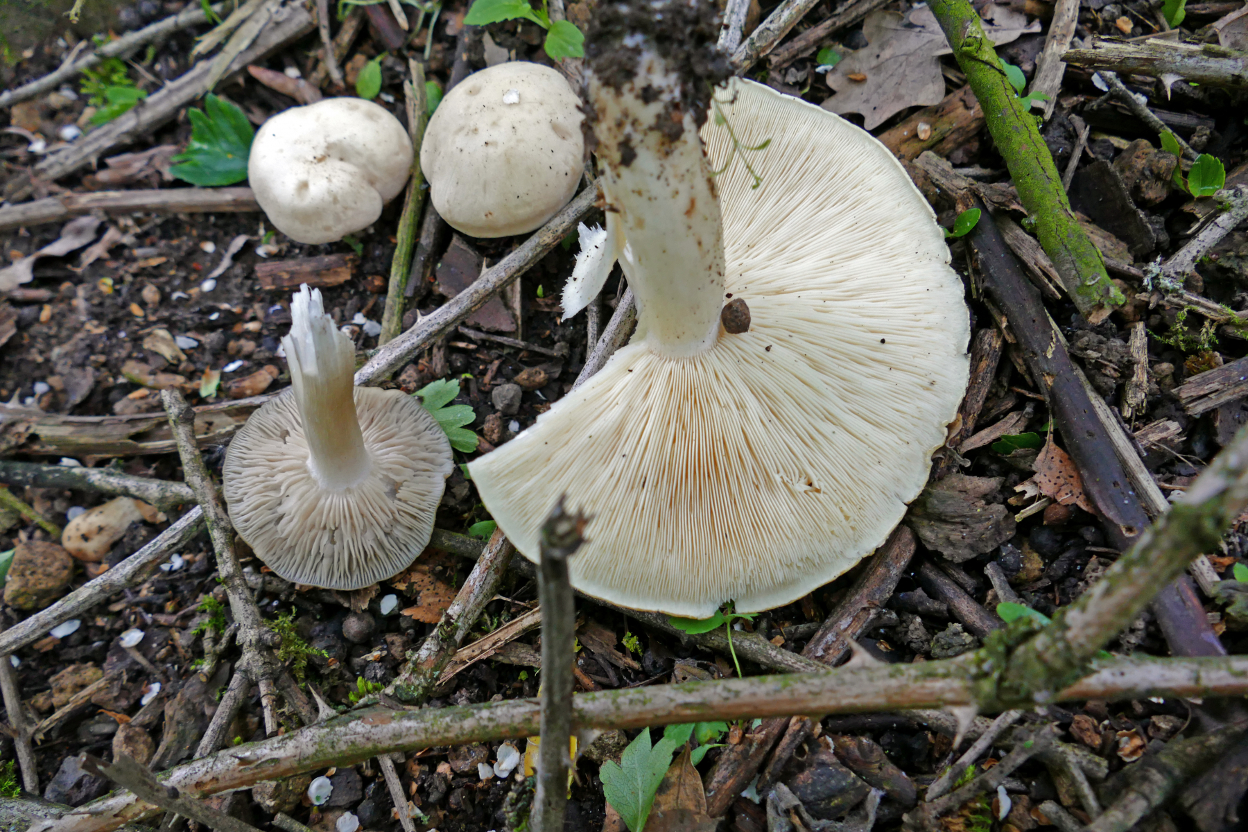 Egal. Also weiter am Randgebiet entlang und in ein angrenzendes Waldstück. Hier gabs schon einmal einiges zu sehen. An einem Standort Calocybe gambosa und E.clypeatum auf einem Haufen.
