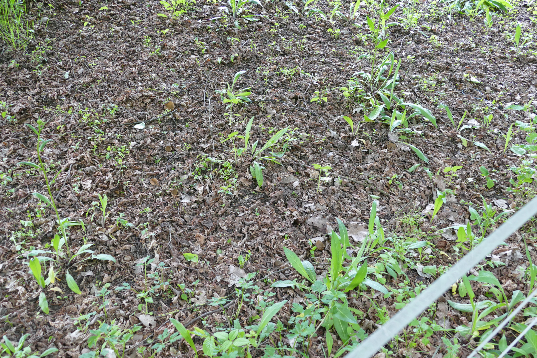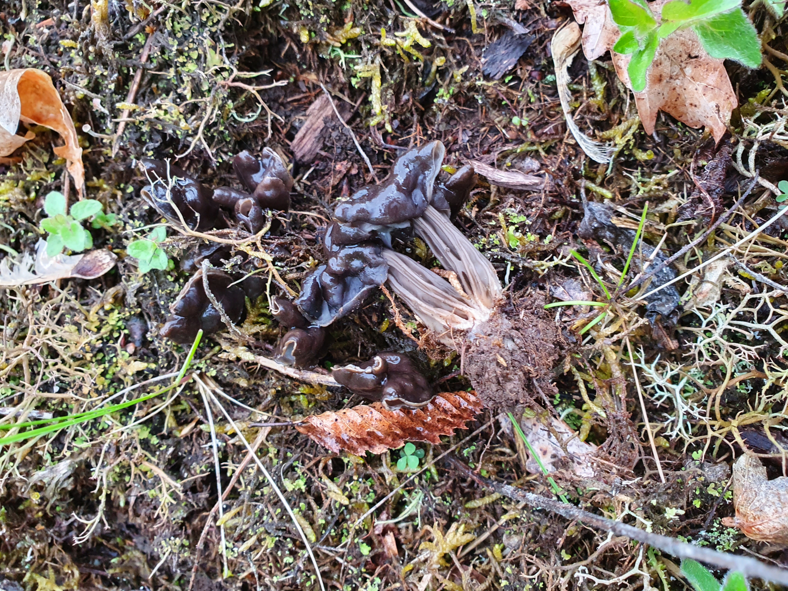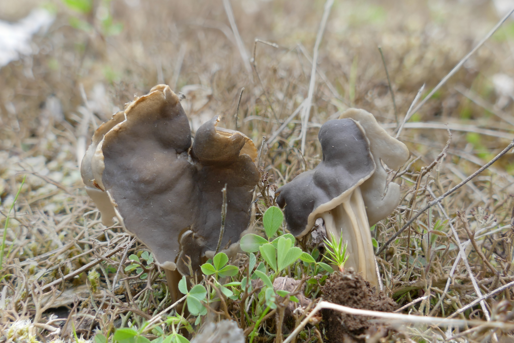 Über den Zaun konnte ich immerhin auch dort wieder zahlreiche Fruchtkörper von Helvella acetabulum erspähen.