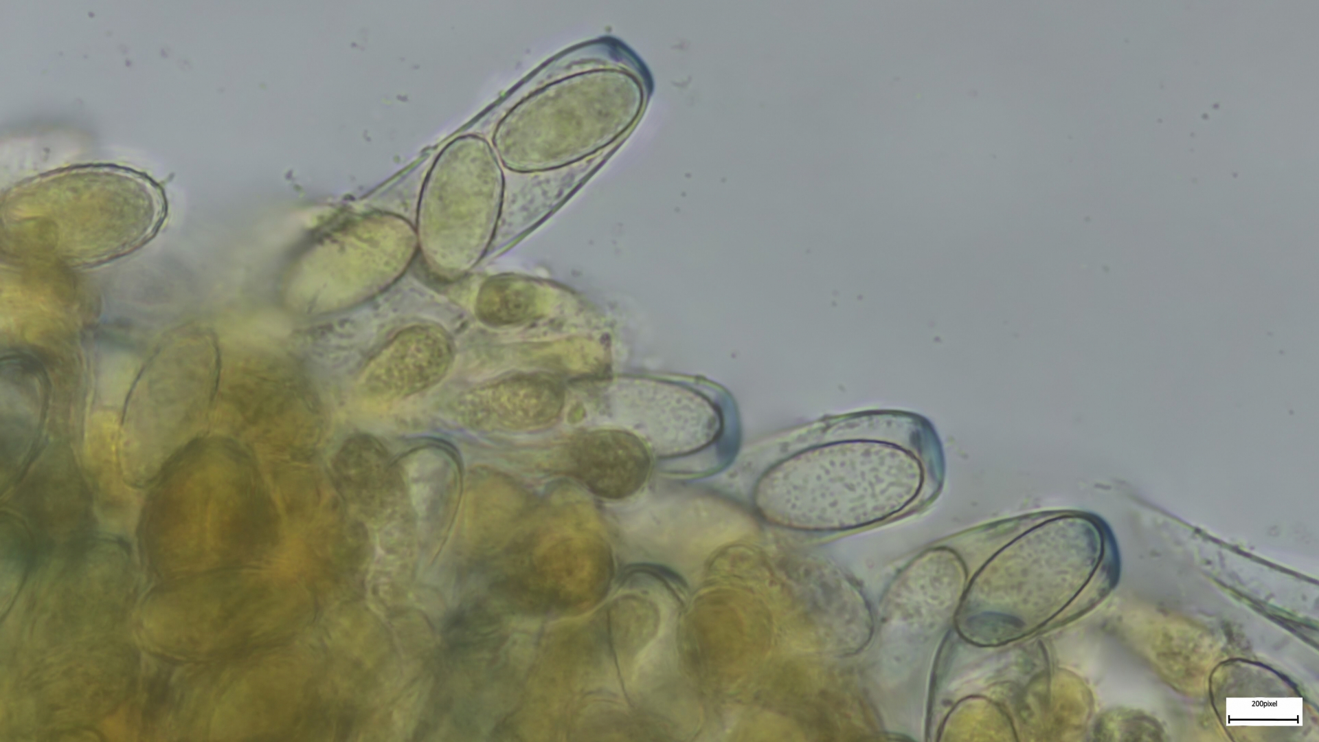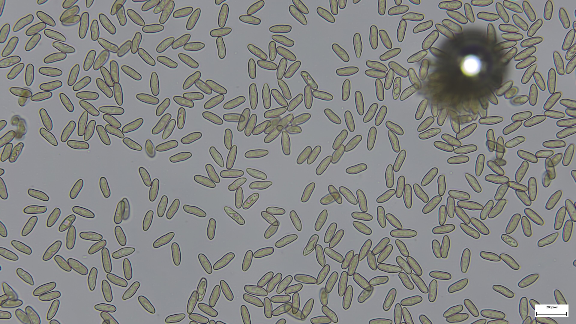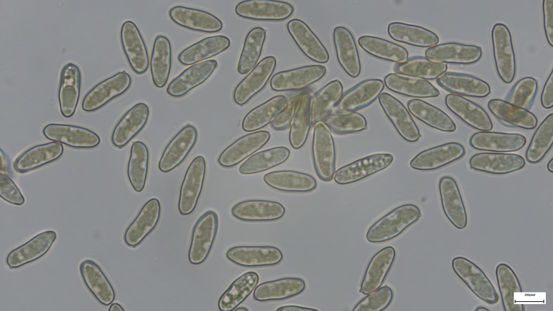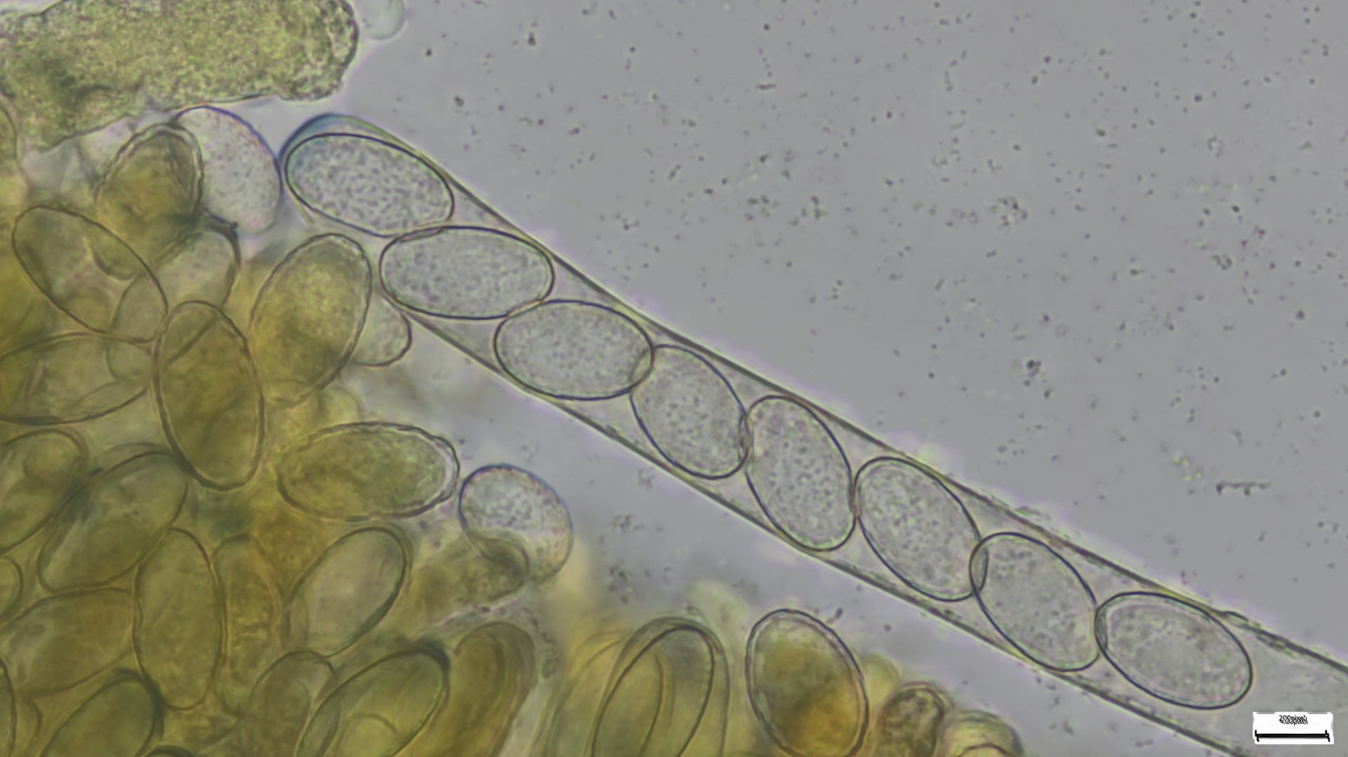 Sporen 17x9 ellipsoid, deutlich warzig ornamentiert, ohne Anhängsel, Operculum amyloid (siehe Bilder). Zerbreche mir morgen nochmals den Kopf.