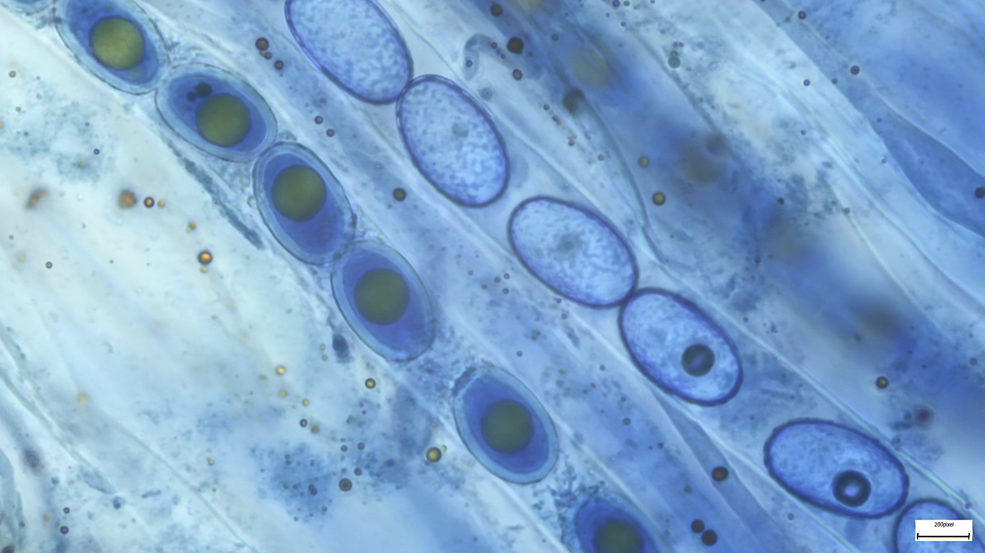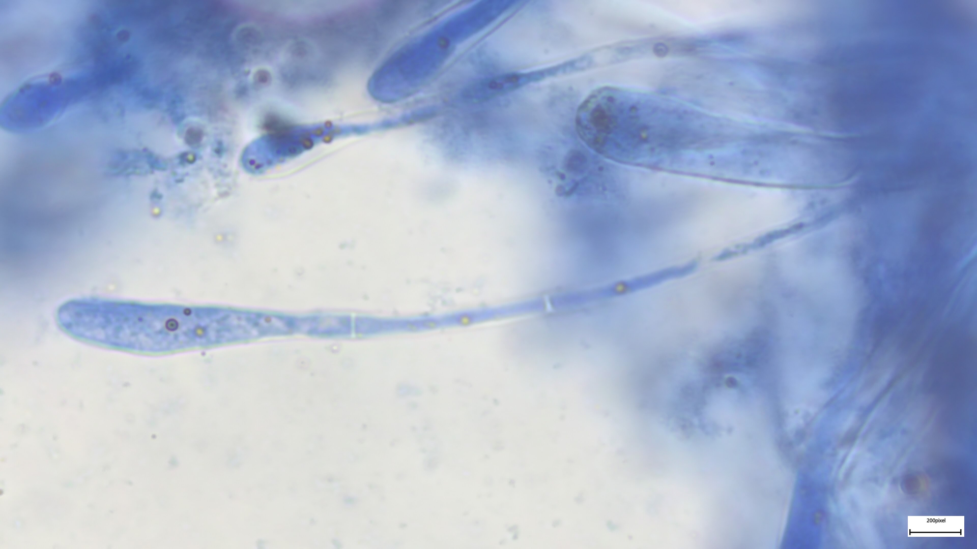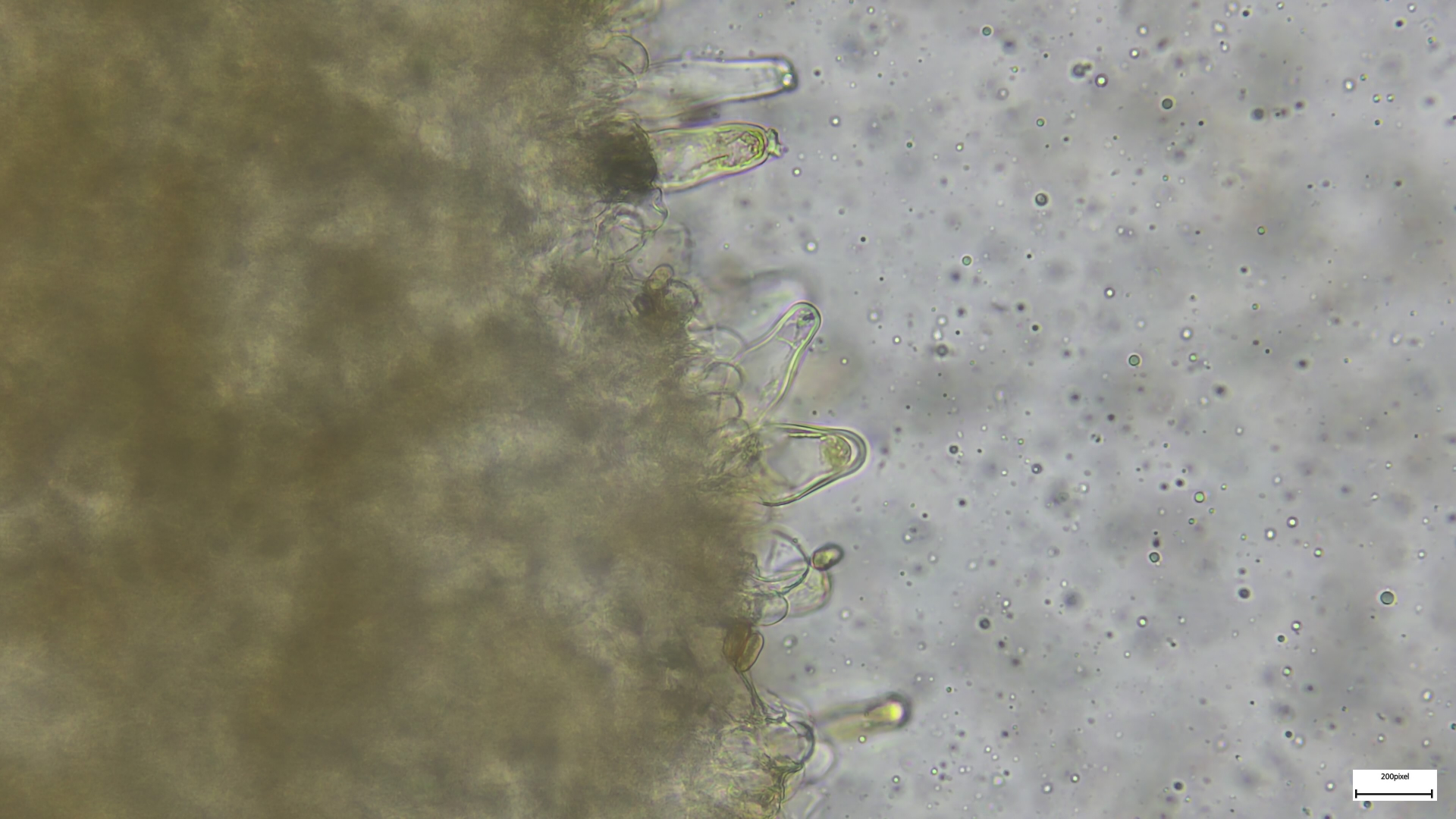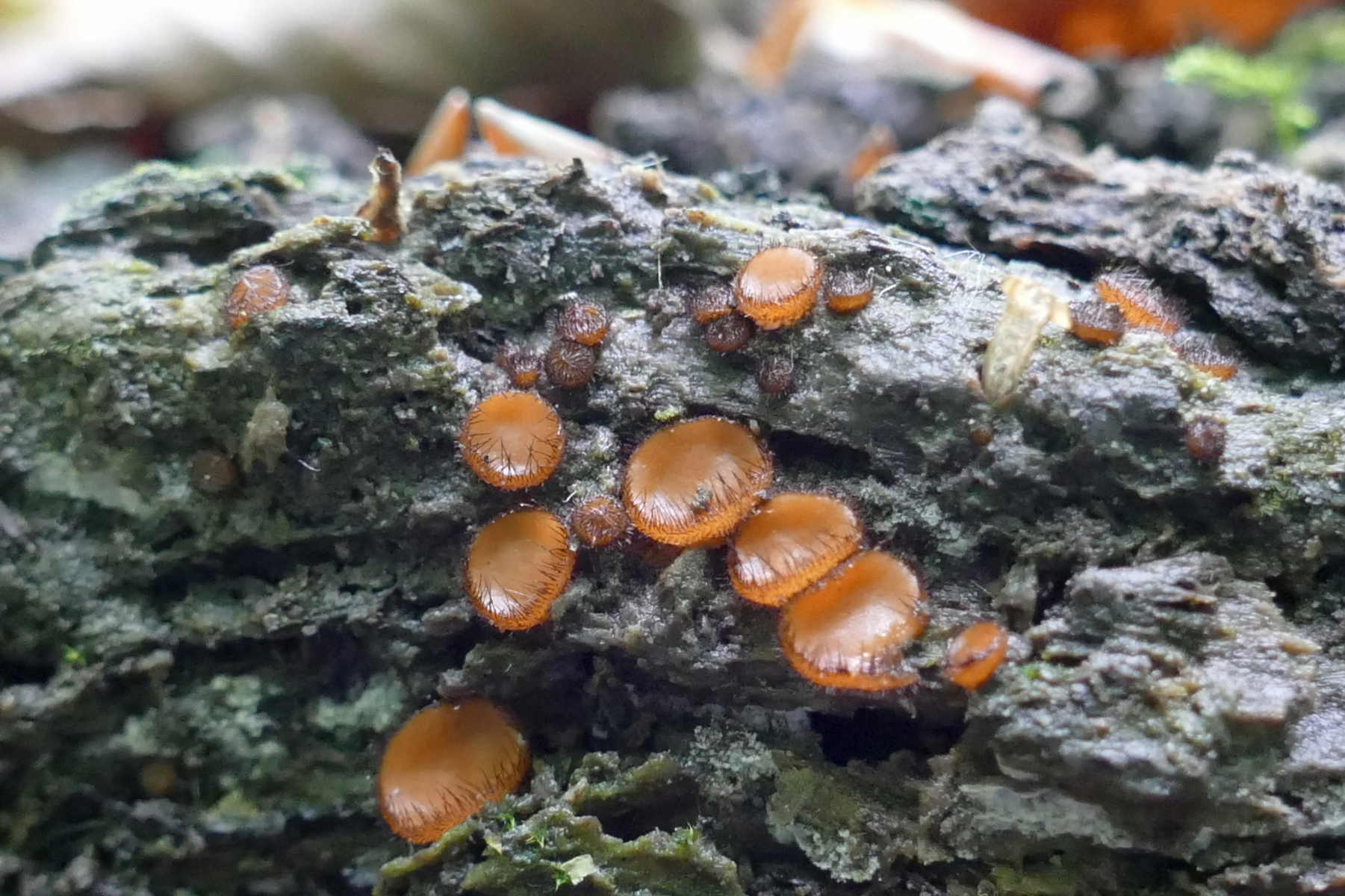 Die Schildborstlinge habe ich noch nicht mikroskopiert, mir ist jetzt etwas die Zeit davongallopiert. Ich denke aber, dass das Richtung Scutellina citrina gehen kann: