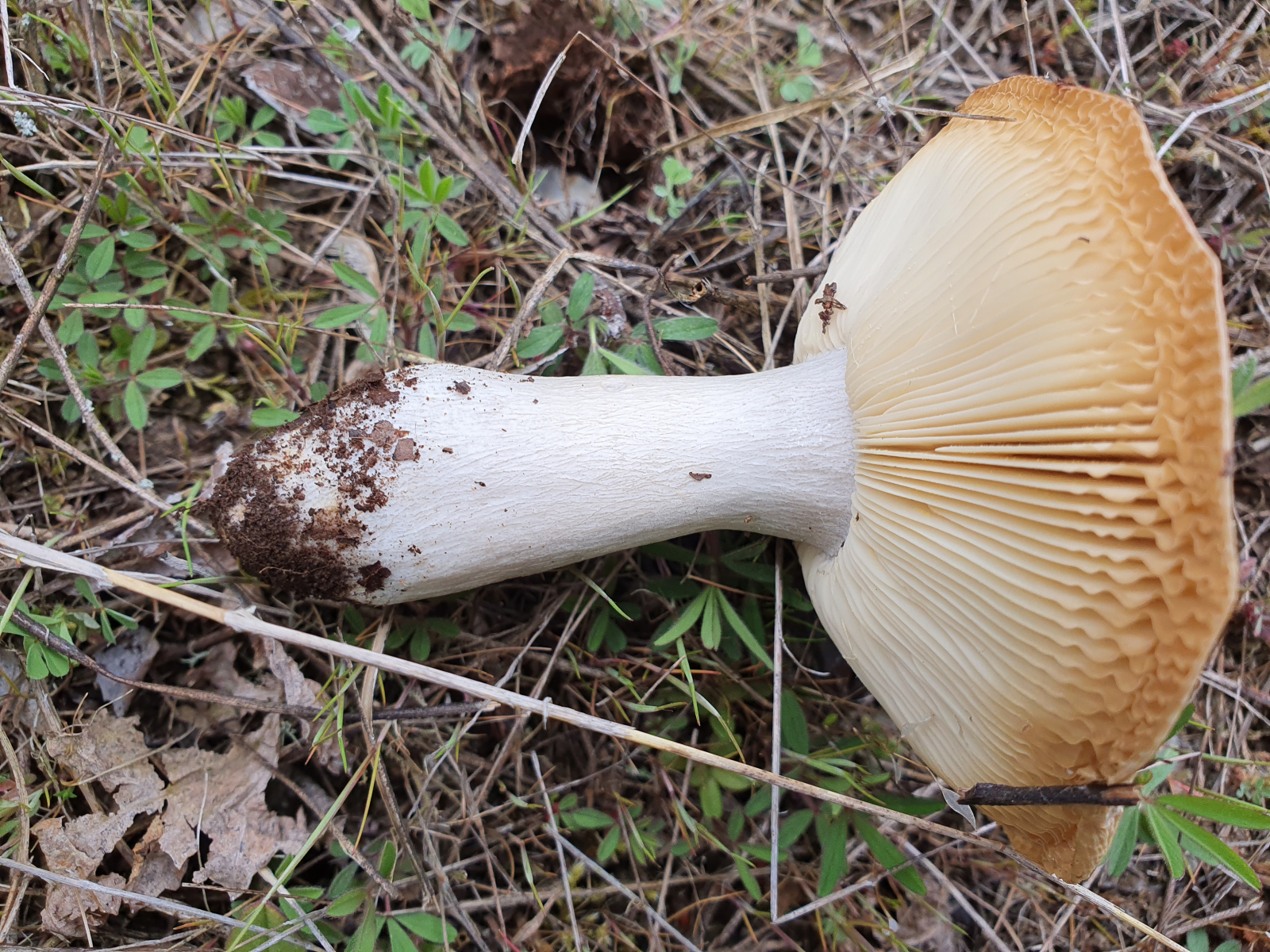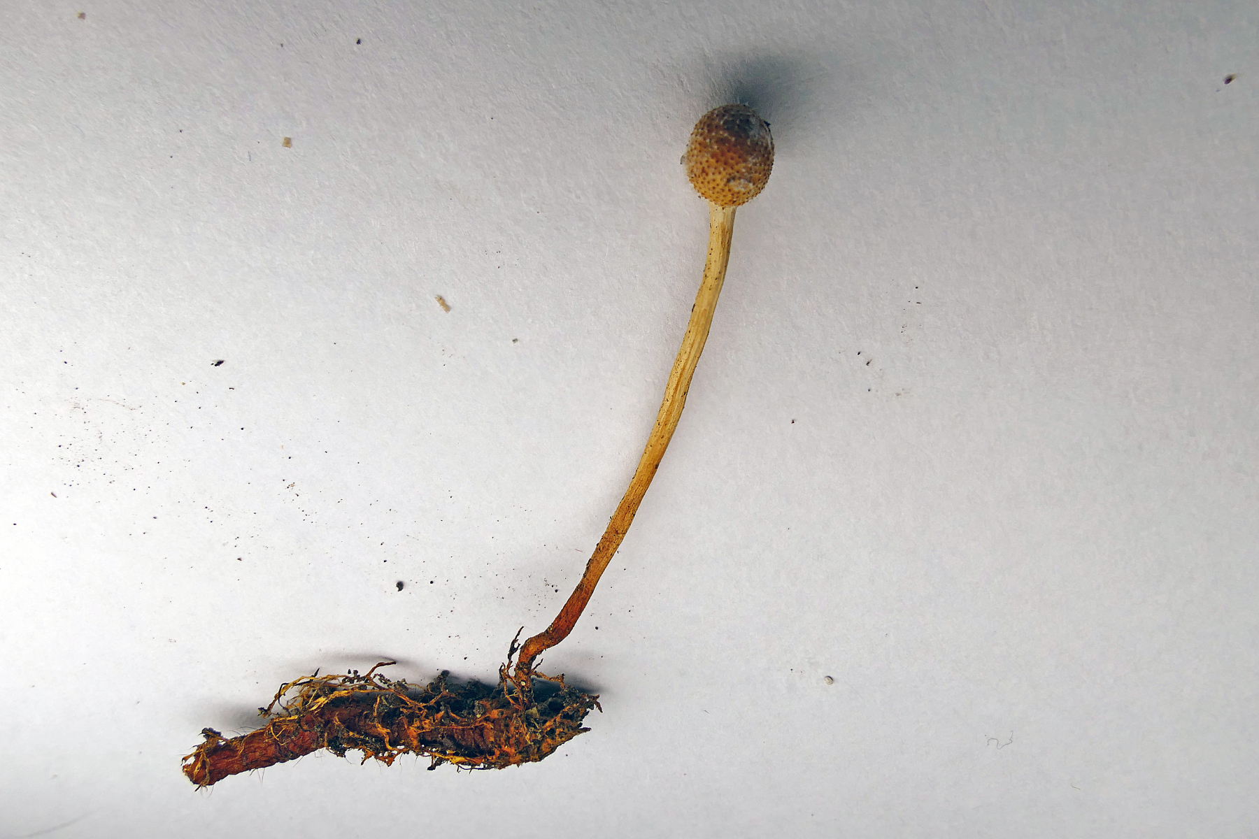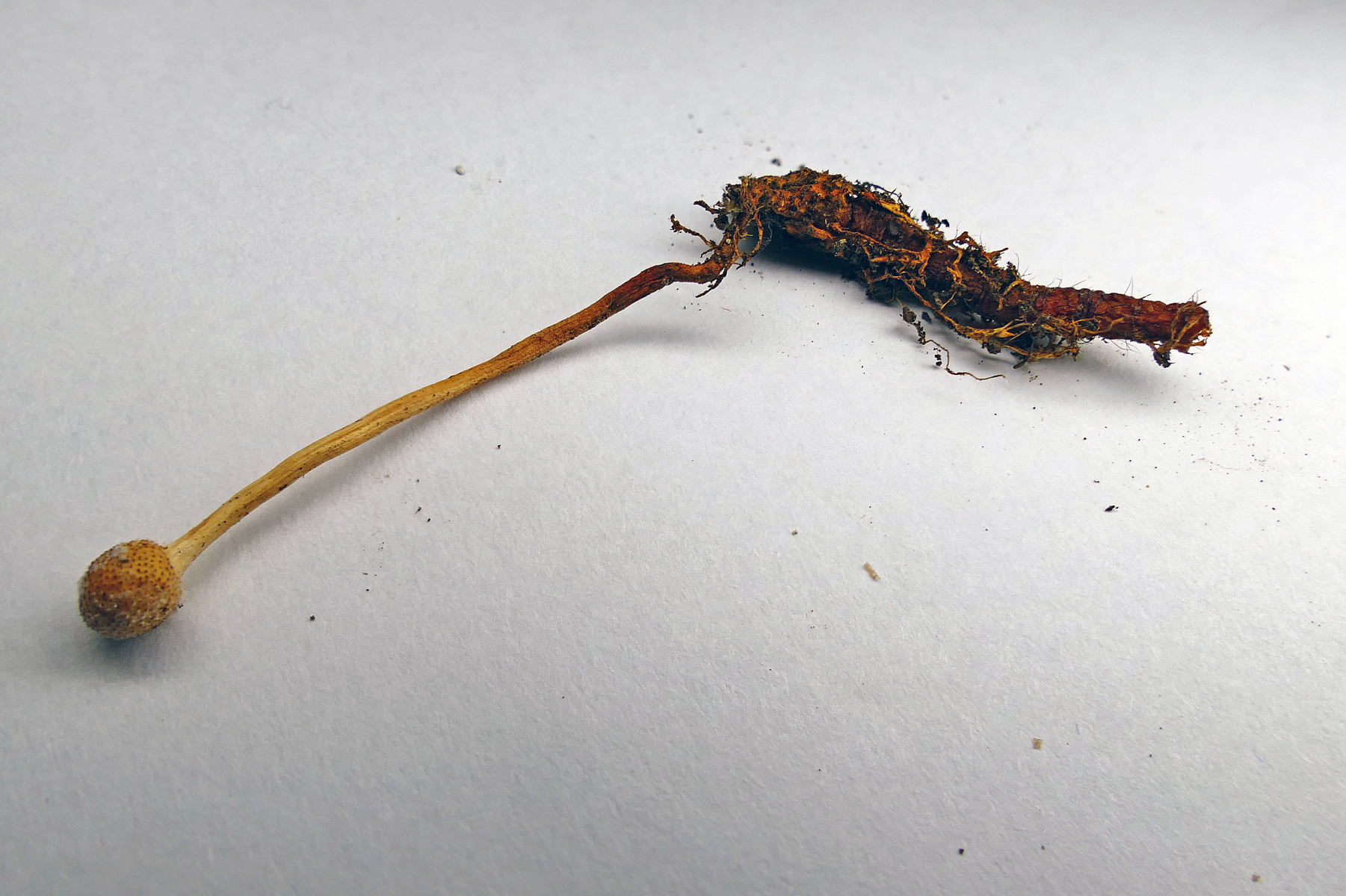 Das hatte ich doch schonmal in der Literatur gesehen. Nun aber vorsichtig mit dem Messer graben. Da sollte doch etwas am unteren Ende sein, wenn mich nicht alles täuscht. Ich wurde nicht enttäuscht: Ophiocordyceps gracilis: