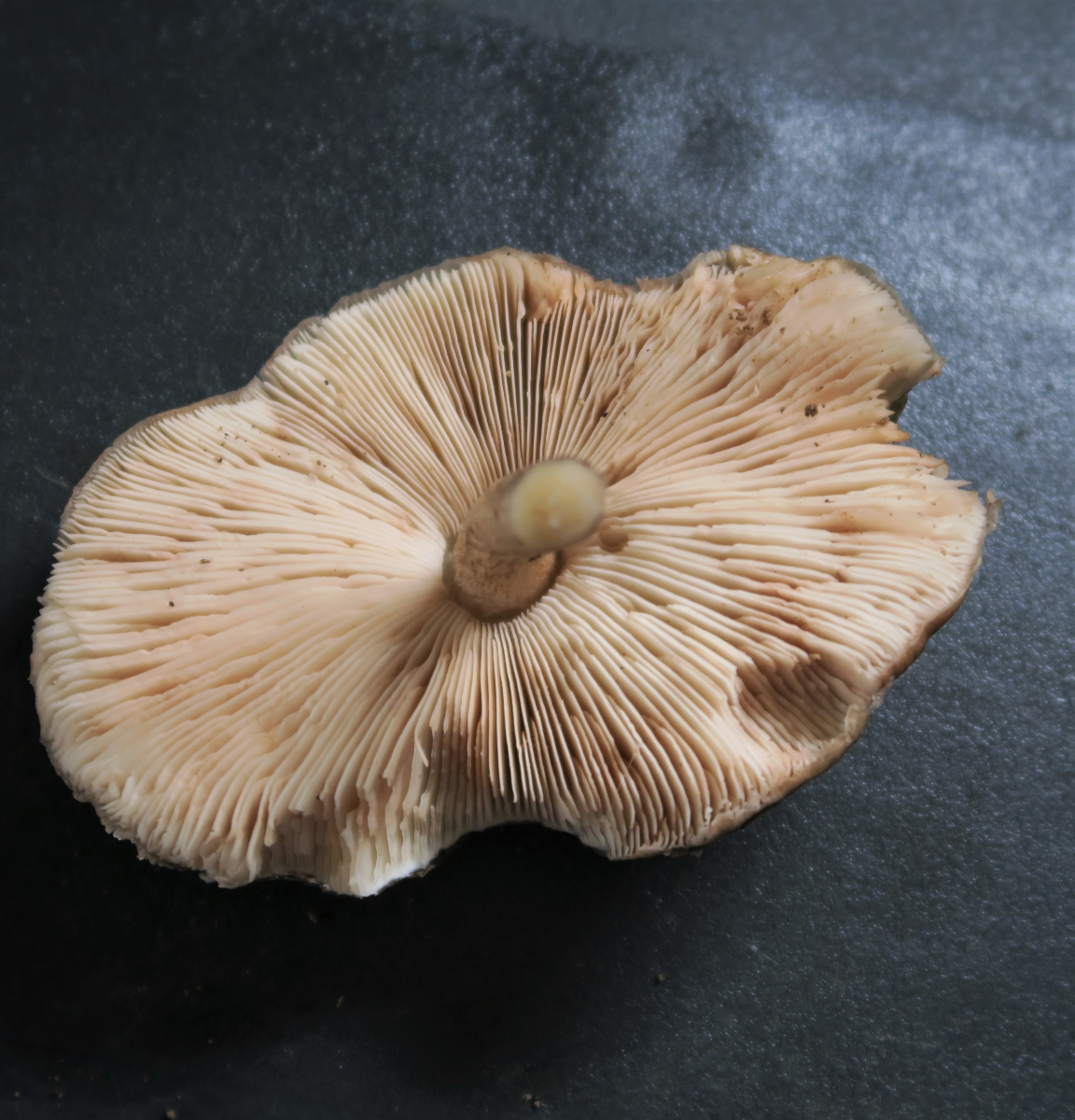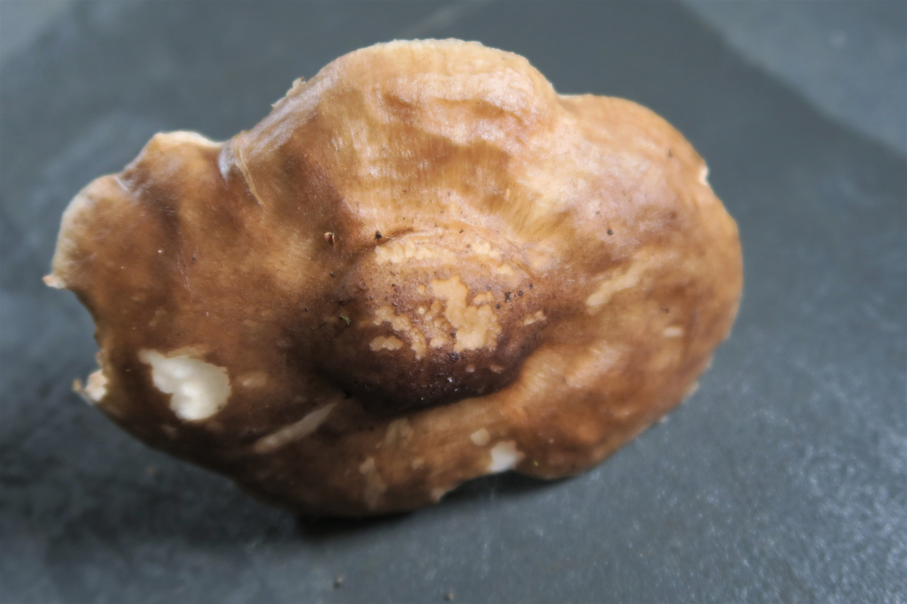 Hi, die freien Lamellen sprechen für einen Dachpilz. Soweit man die Huthautstruktur erkennt wohl eher der Rehbraune.