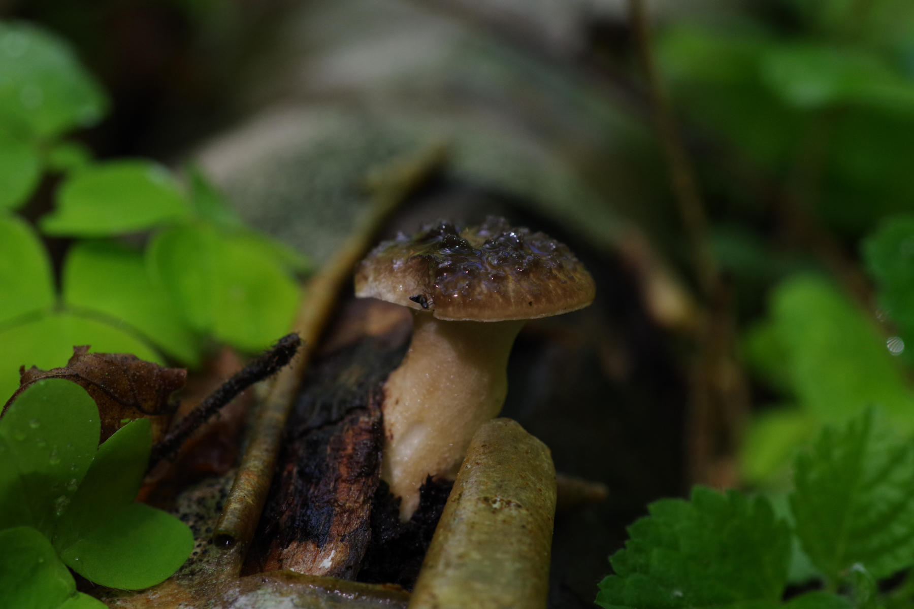 an Hasel und Eberesche, jeweils abgebrochen und liegend bzw. hängend, sprießen derzeit an mehreren Stellen diese Polyporusse. Ich vermute hier wegen der bei den größeren Exemplaren wenig ausgeprägten Schuppen P. tuberaster. Zudem sind an einem Substrat auch vorjährige mumifizierte Exemplare vorhanden, die größenmäßig eher zu dem kleineren der beiden Schuppigen passen.