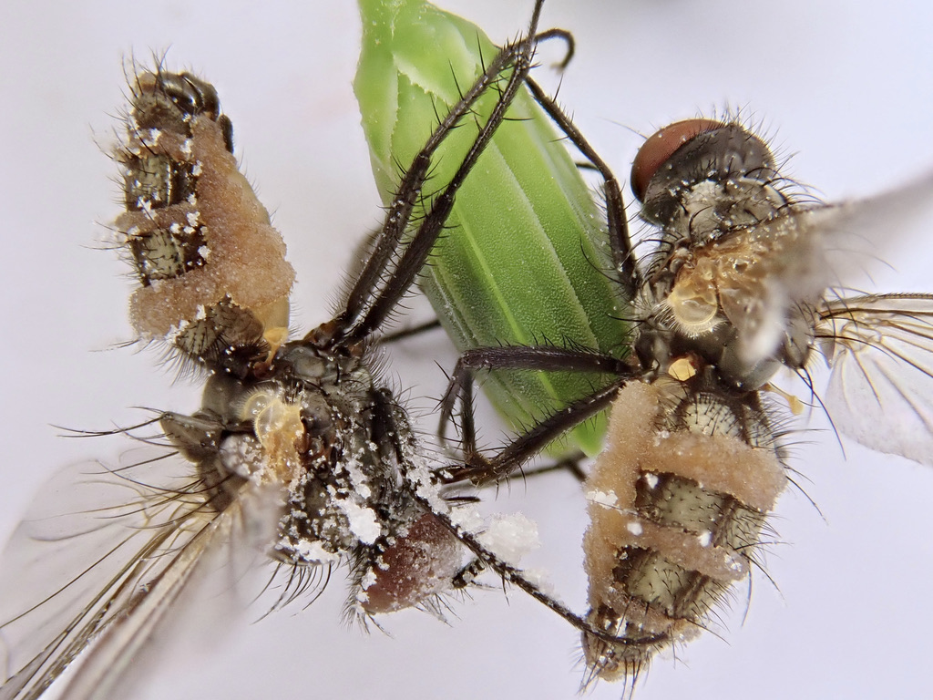 Die Entomophthora muscae ist ein Name, der gerne benutzt wird, wenn eine Fliege befallen ist und durchaus passen könnte.