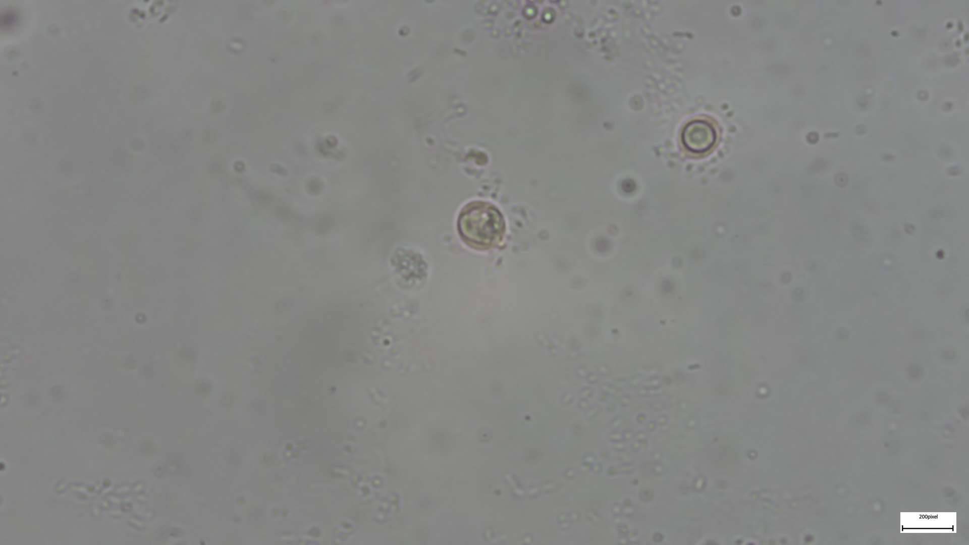 ich möchte Dich nicht allzu sehr entmutigen, aber ich würde Deine Sporenbilder anders interpretieren. Das erste sieht mehr nach aufgeplatzten Sporen aus, d.h. es wurde zu stark gequetscht.