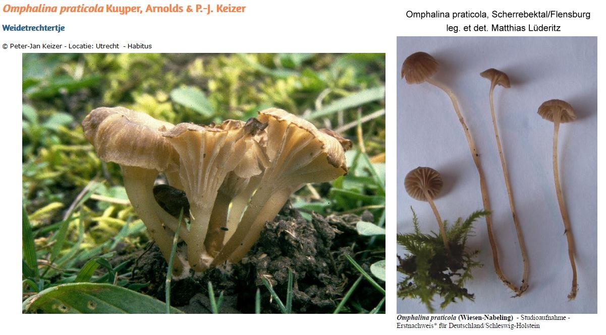 Obige Fotos übernommen aus: NMV Verspreidingsatlas | Omphalina praticola - Weidetrechtertje