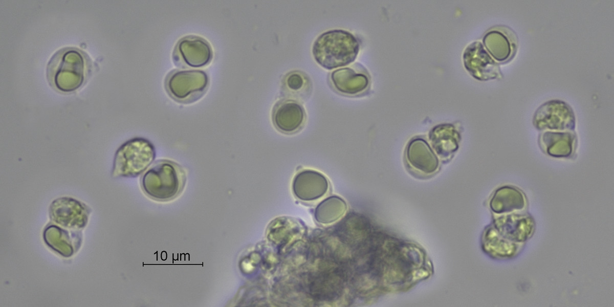 Desweiteren stehen bei zweisporigen Arten die Sporen immer so weit auseinander, dass ich euch empfehlen würde, die Hypothese des Zusammen-Pappens zweier Sporen wieder zu verwerfen. Und es sah im Mikroskop auch nicht nach solchen Zweierpacks aus.