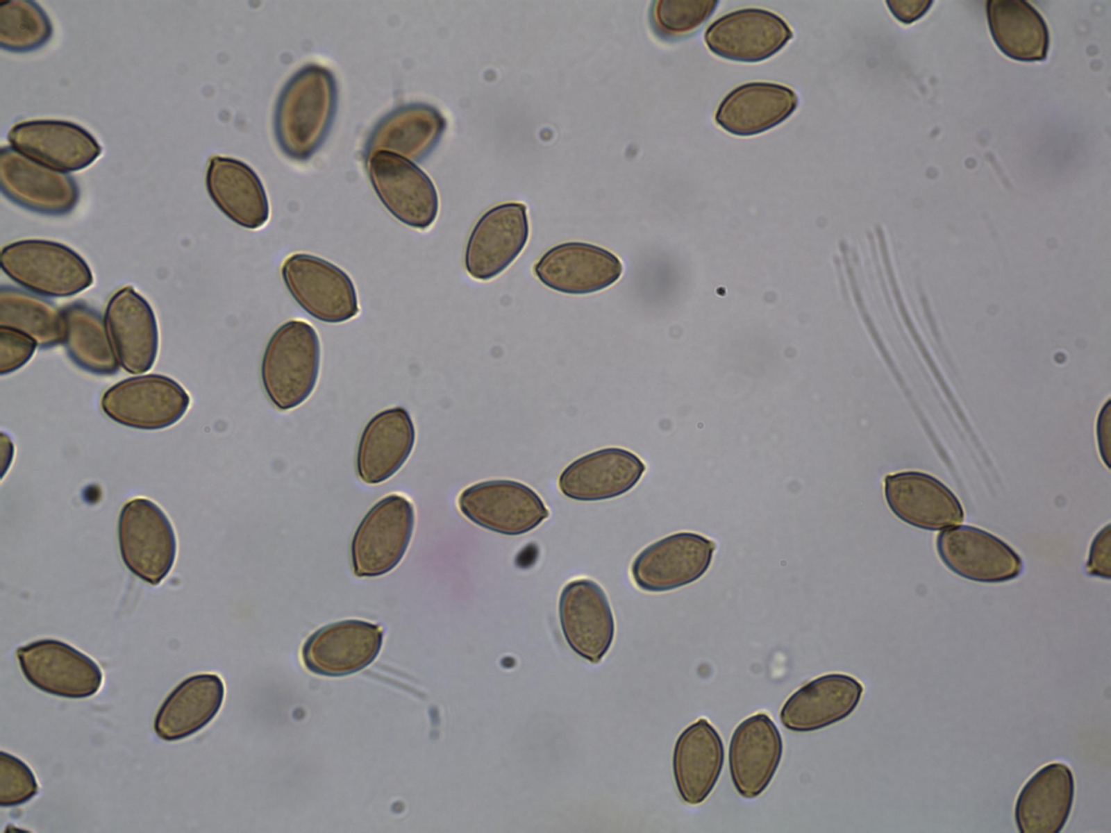 Die Sporen unterscheiden sich von der Kollektion an Rindenmulch erheblich und ich habe zweimal alles überprüft um einen Irrtum auszuschließen