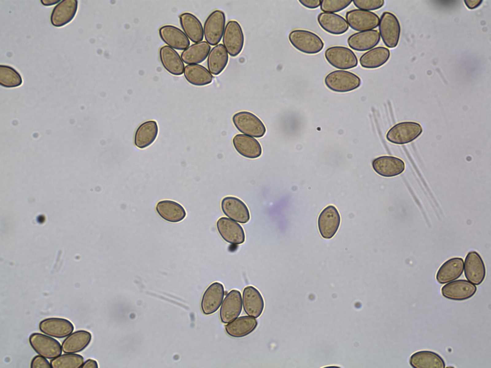 Die Sporen unterscheiden sich von der Kollektion an Rindenmulch erheblich und ich habe zweimal alles überprüft um einen Irrtum auszuschließen