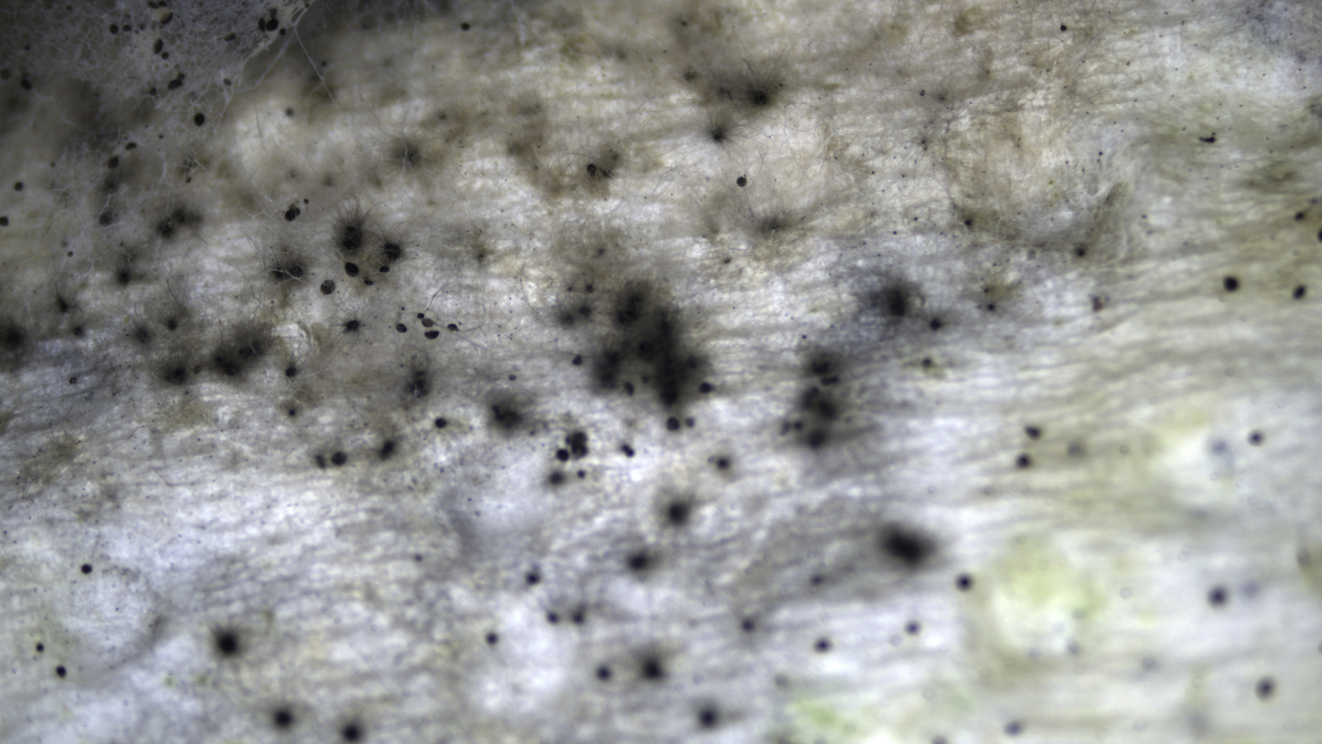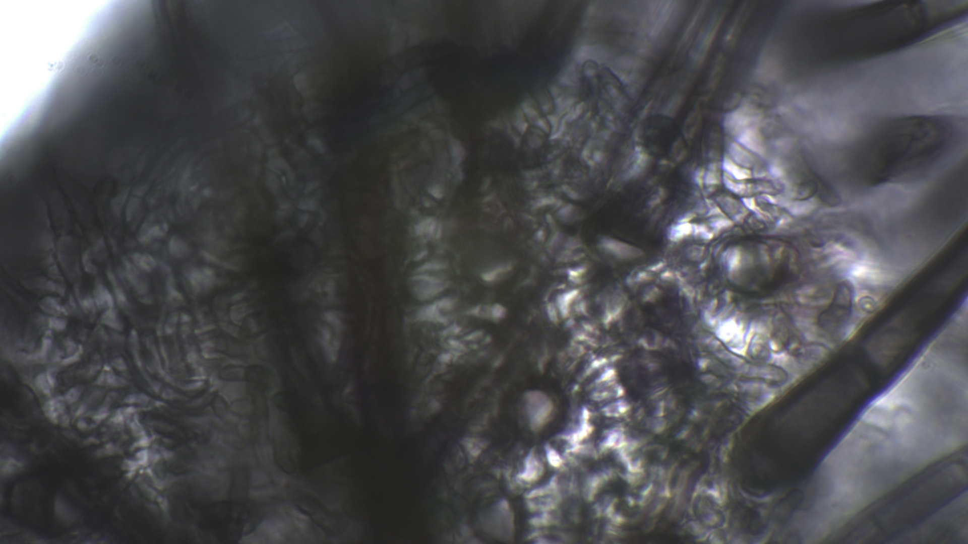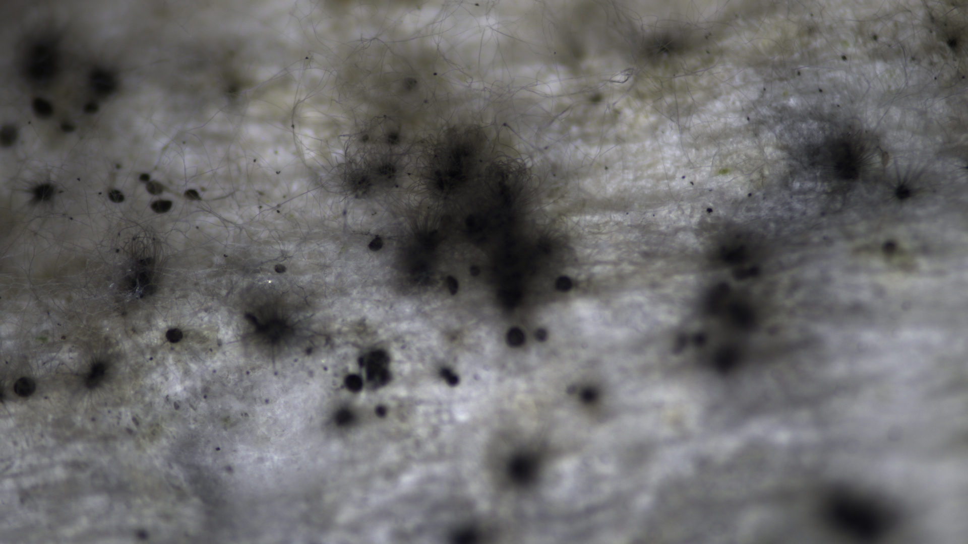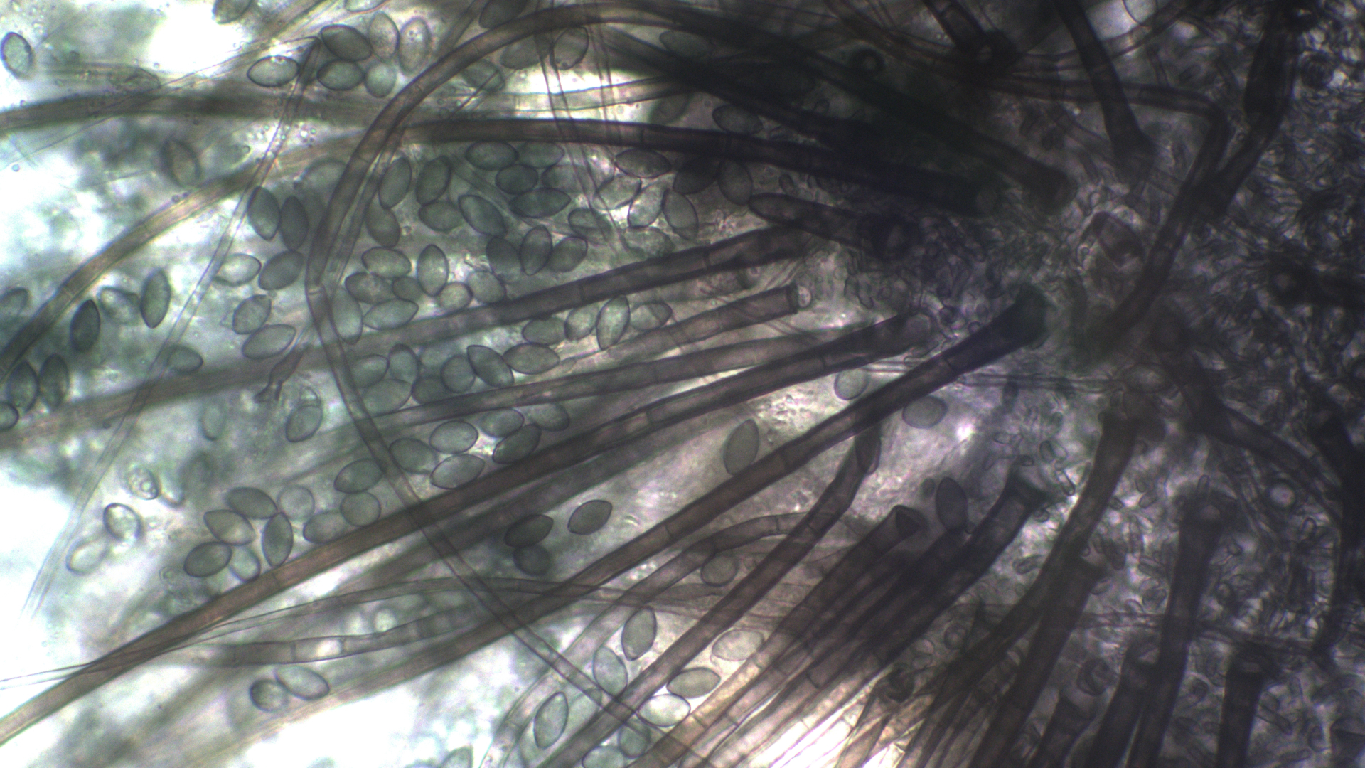 Hab mir noch mal ein paar Fruchtkörper vorgenommen- sie sind definitiv rund haben ringsum Haare, Sporenbreite hab ich auch noch gemessen. Fotos der Wand sind dabei, sind die cephalothecoid? (und richtigrum geschrieben?