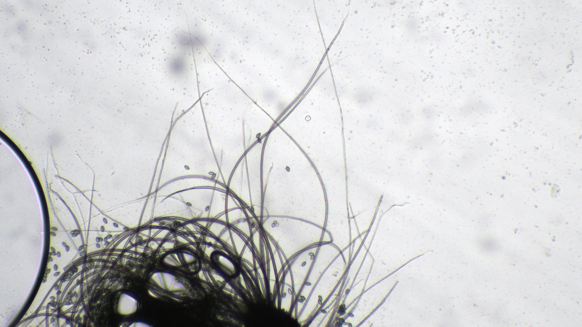 Wenigstens einige Haare sollten im Idealfall apikal gekrümmt sein.