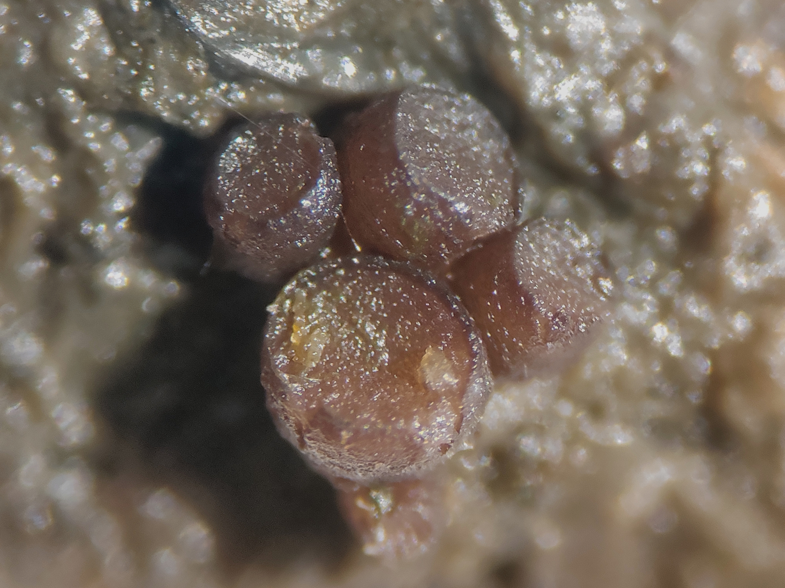 bereits am dritten Januar sammelte ich bei einem Familienausflug in ein Heidestück bei Schneverdingen einige Proben von Heidschnuckendung ein. Zuhause fielen mir dann ein paar rotbraune Becherchen mit einem Hauch violett auf einer Probe auf. Unter dem Mikroskop bestätigte sich mein Verdacht einer Pseudombrophila, die sich jedoch meinen Schlüsselversuchen widersetzte, da die Sporenmaße nicht so richtig zu einer der bekannten Arten passten. Ich nahm also zu Uwe Lindemann Kontakt auf, der sich intensiver mit dieser Gattung beschäftigt. Er bot mir an, die Kollektion sequenzieren zu lassen, allerdings war nicht mehr genug Material übrig geblieben. Kurzerhand fuhr ich ein paar Tage später zusammen mit Eike nochmals zu dem Fundort und nach langer Suche gelang tatsächlich der Fund eines weiteren Köddels mit einigen Apothecien. Nach einiger Zeit kam nun das Ergebnis aus dem Labor und brachte eine Überraschung: Trotz der ungewöhnlich breiten Sporen handelt es sich bei der Kollektion um Pseudombrophila fuscolilacina! Die Art dürfte wohl bislang in Deutschland noch nicht gemeldet worden sein und auch weltweit bislang nur selten gemeldet. Bekannt sind aus der jüngeren Zeit zwei Funde aus Spanien, sowie ein Fundort in Frankreich, der wunderbar (leider auf Französisch) publiziert wurde (Artikel). Ich freue mich sehr, dass die Kollektion einen Namen bekommen konnte und wir einen weiteren Fund hier aus der Lüneburger Heide vermelden können.
