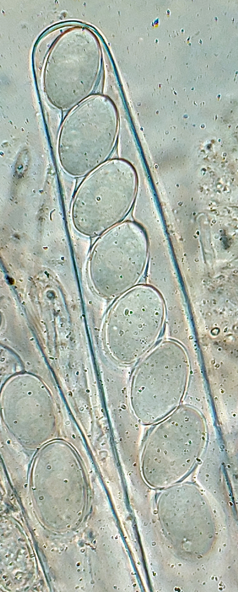 - Asci uniseriat, 8-sporig, 220 - 250 x 20 -24 µm, IKI -