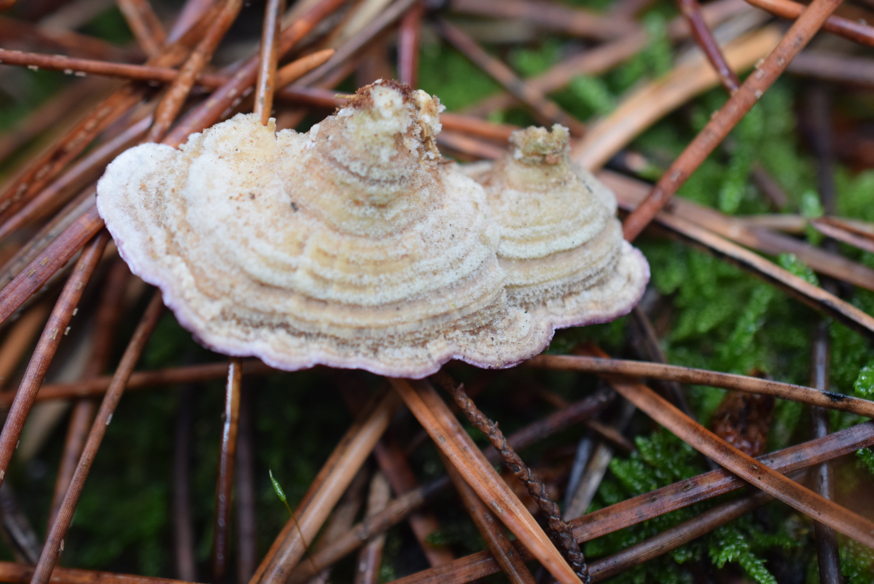 1) ein resupinates Labyrinth, vielleicht Trichaptum sp.