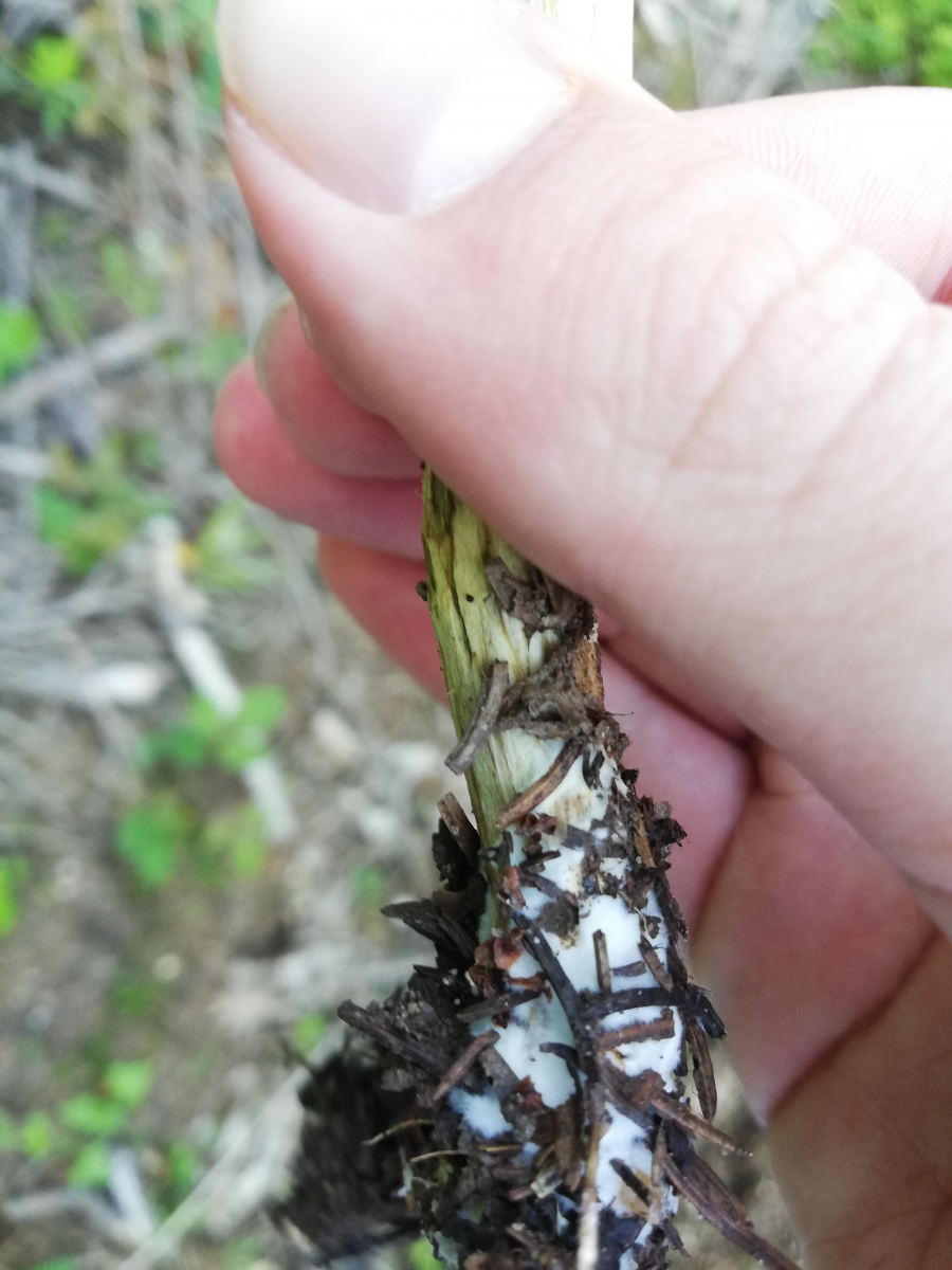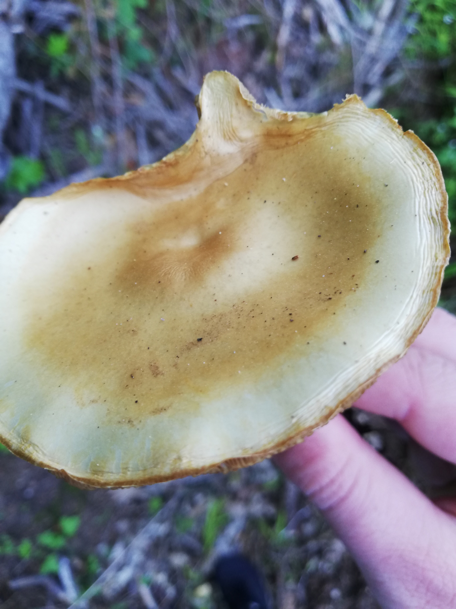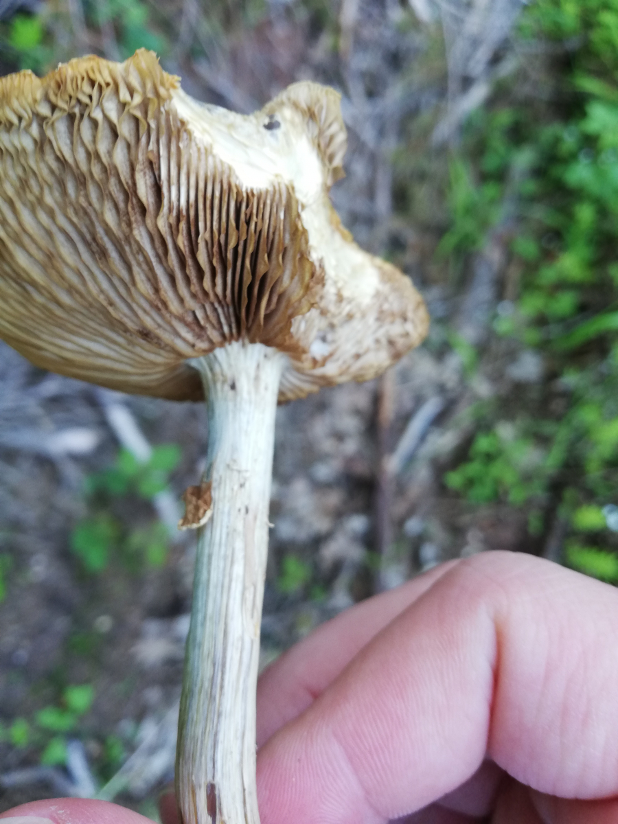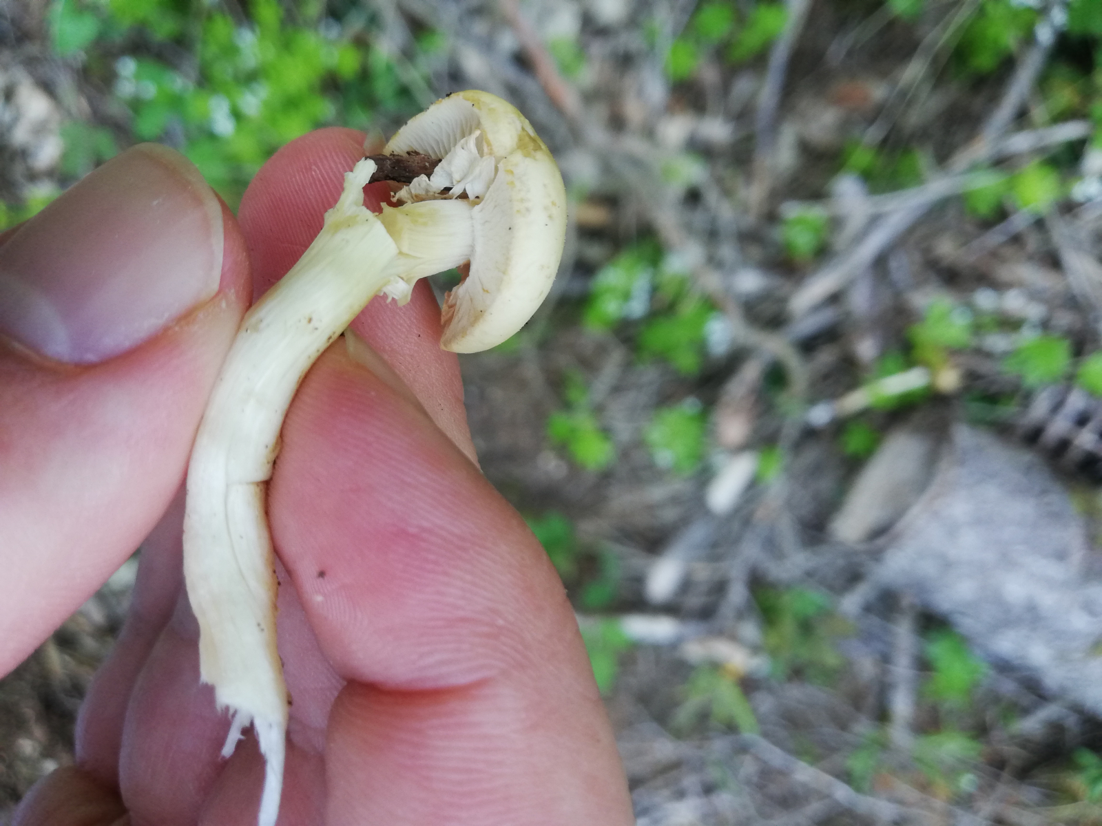 Habe heute diese Pilze allesamt herausgerissen am Wegrand im Mischwald gefunden (Buche und Fichte in unmittelbarer Nähe). Geruch war sehr Champignonartig. Habitus erinnert an Amanita (auch mit Velum und Ring) aber die Stielbasis des größeren Pilzes sieht eher unauffällig aus. Hat da jemand ne Idee?