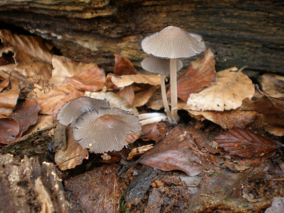 eines Buchenwaldes fotografiert. Auffällig ist der rissige Hutrand und weißer mehlartiger Staub. Die Lamellen waren braun. Weitere Fotos konnten leider nicht gefertigt werden. Der Hut gleicht einem "Schneeweißen Tintling" (Coprinus niveus). Daher war meine Vermutung, dass es sich hier um eine Tintling-Art handelt.