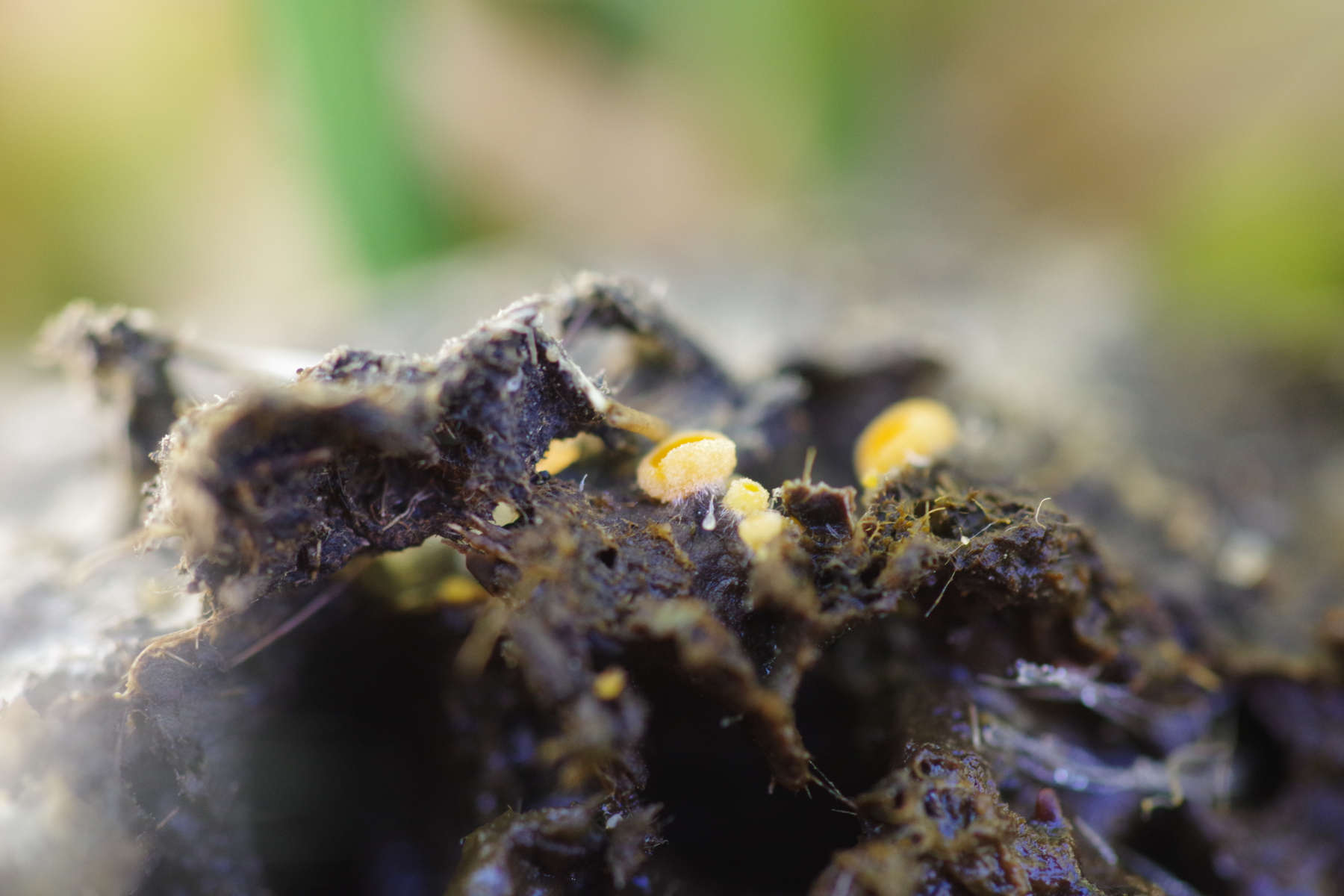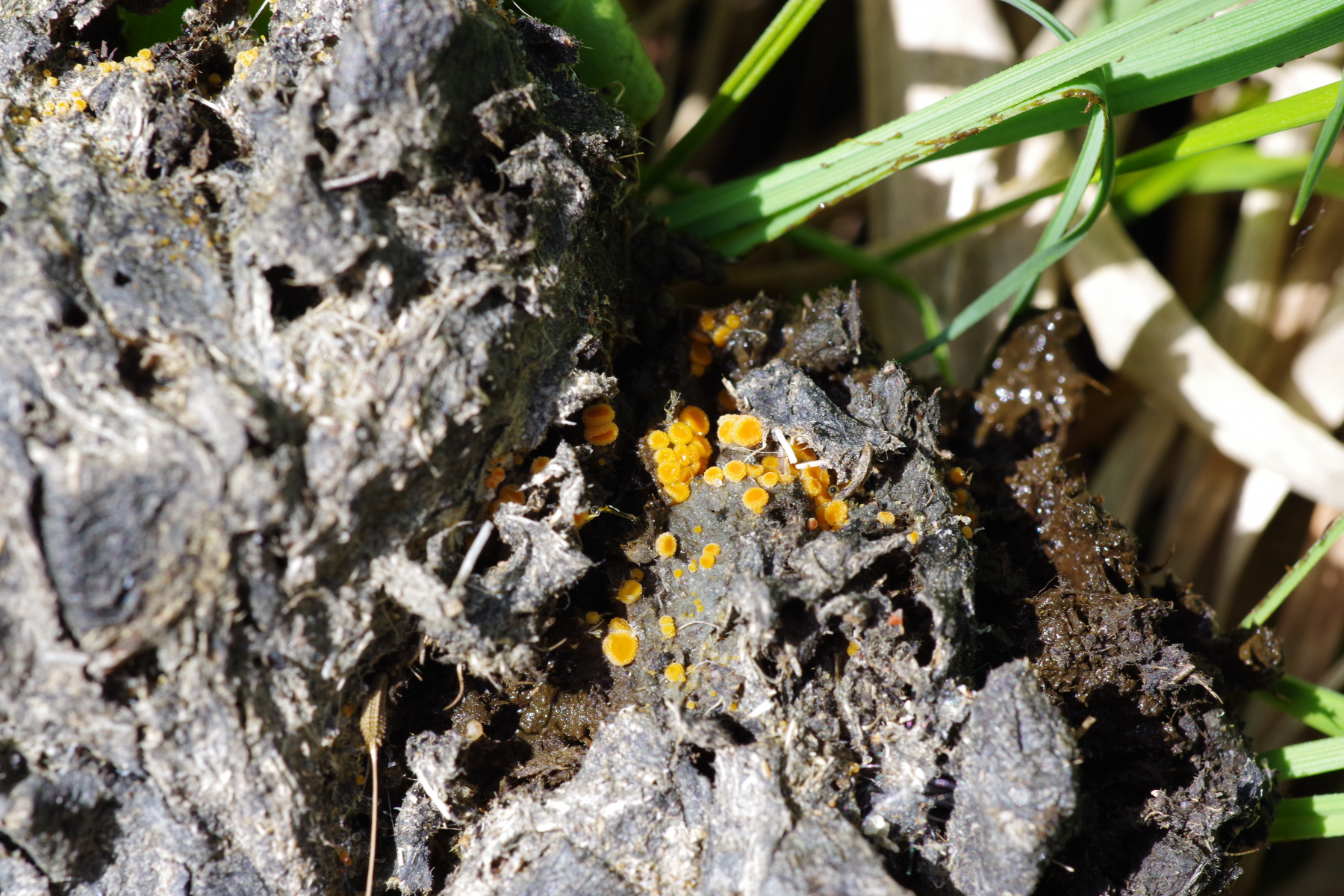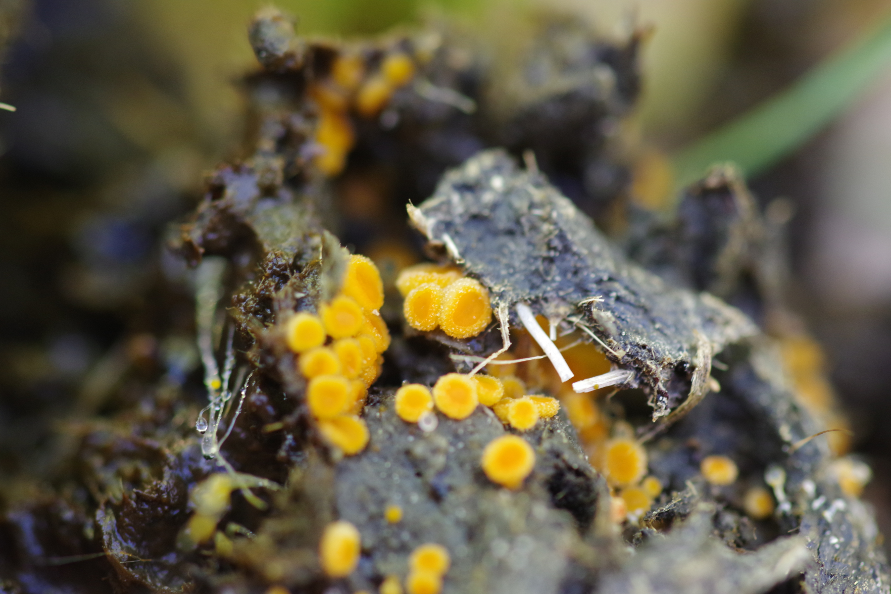 Auf einem Dunghaufen, m.E. Wildschwein, dann diese farbenfreudigen Becher, und erst bei Durchsicht der Bilder ist mir aufgefallen, dass da auch ein Pilobolus dabei ist.