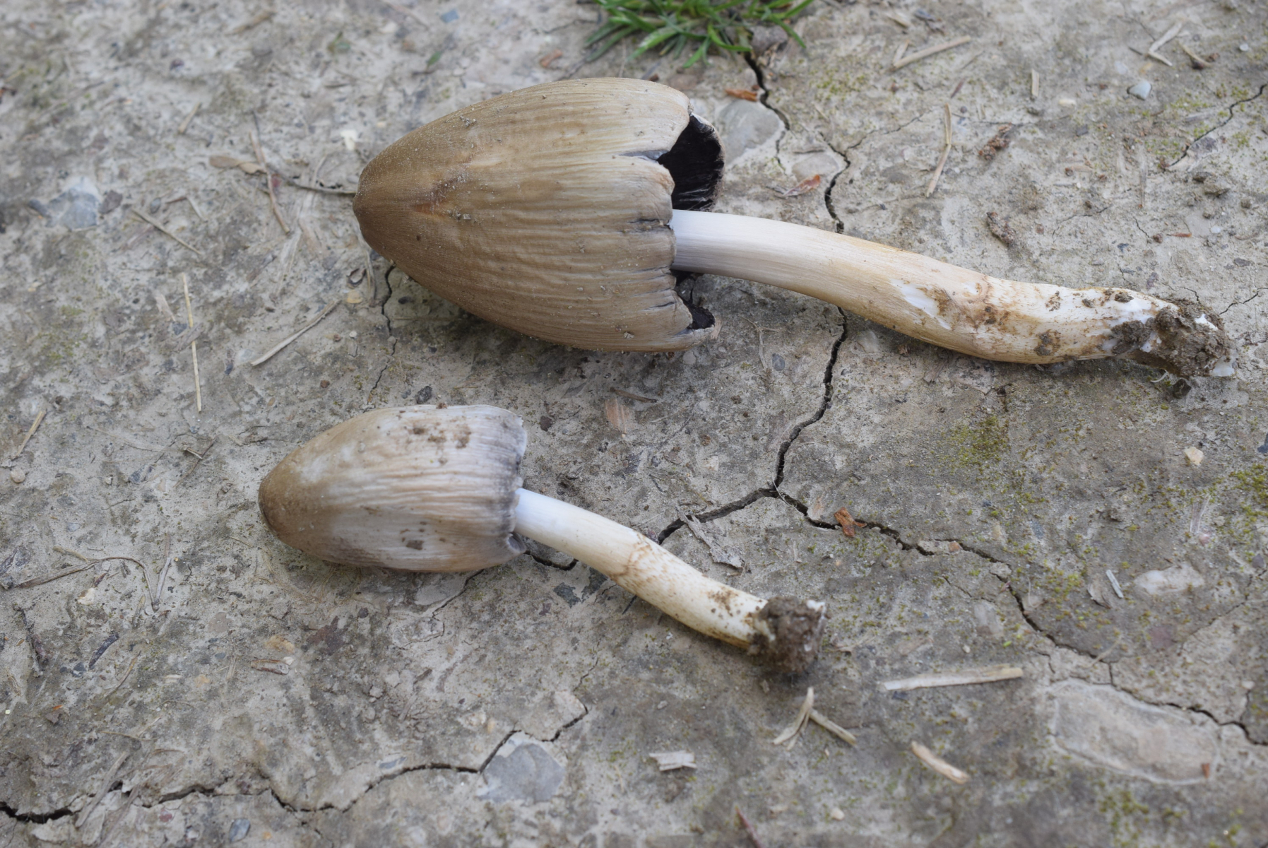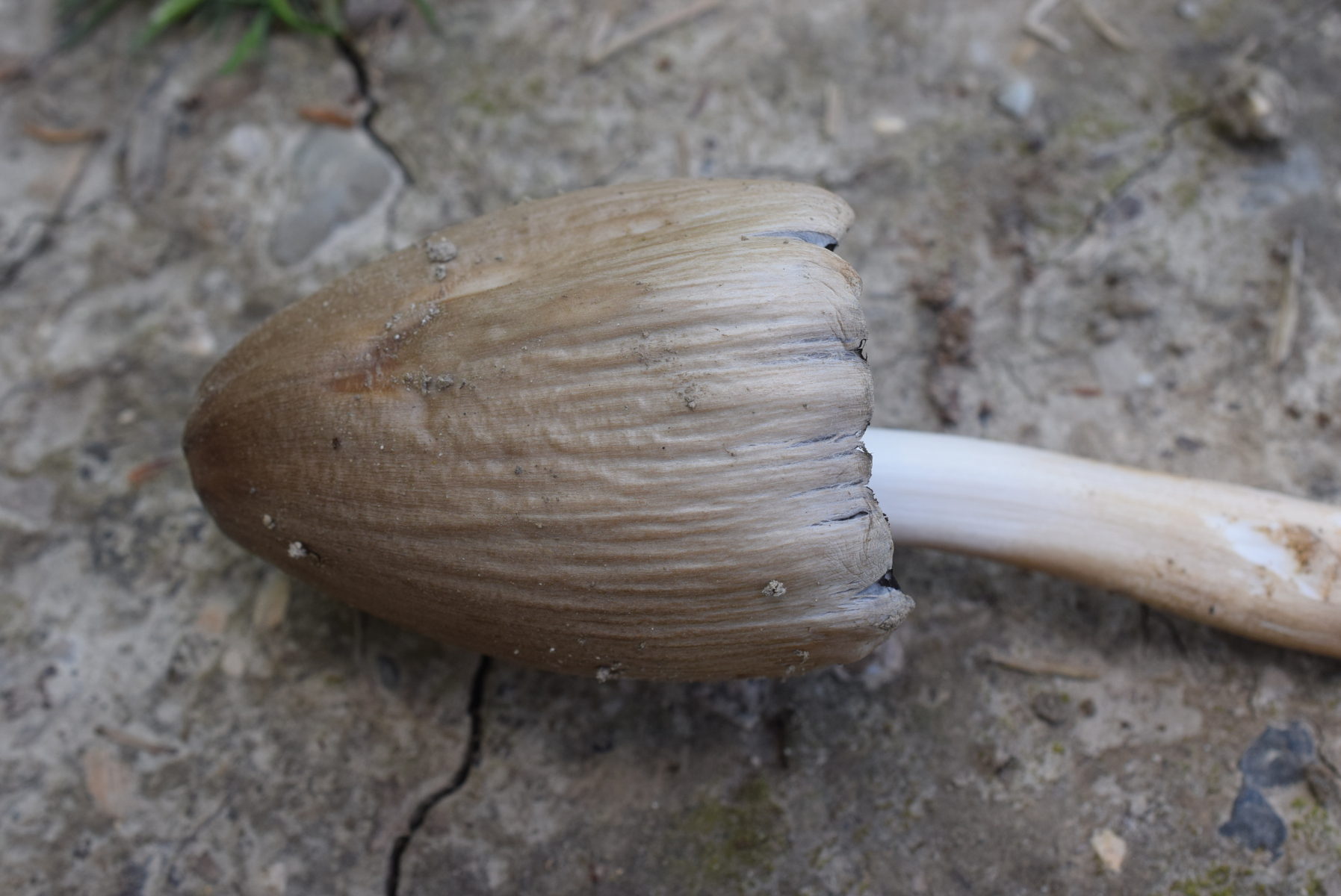 Ich denke, dass es einer aus der Atramentariusgruppe ist, der halt mikroskopiert werden muss. Da gibt es so aus dem Stegreif, neben C. atramentarius selbst, eben noch den C. acuminatus, der makroskopisch rel. spitzhütig ist und mit wenig Velum daherkommt und C. romagnesiana, der am meisten Velum auf dem Hut hat.