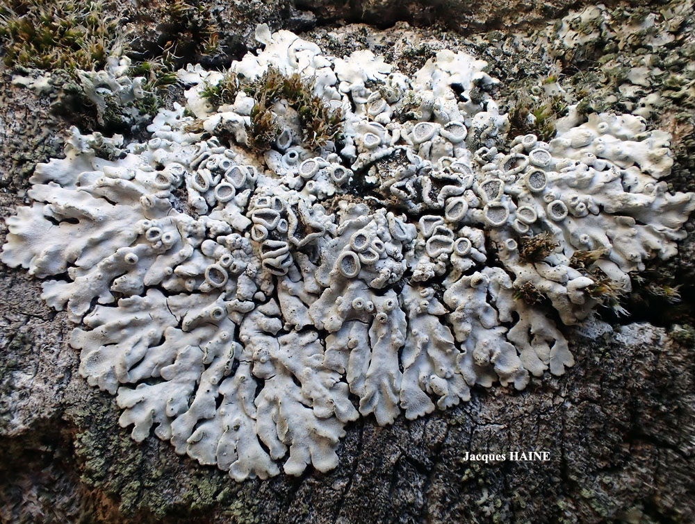 bezüglich der unbestimmten Flechte in Bild 4 habe ich mittlerweile unter (Lichens marins) folgende Flechte (Physcia biazina) gefunden, deren Eigenschaften mit denjenigen der beobachteten Flechte m.E. sehr gut übereinstimmen: insb. breitere Lappen als P. aipolia, leicht überlappend, bereifter Thallus (nicht fleckig) und weiß bereifte, verformte Apothecien. Besagte Physcia biziana sieht der in Bild 4 nicht nur sehr gleich, ich finde auch die dortige Beschreibung passt sehr gut zu der gesuchten Flechte.