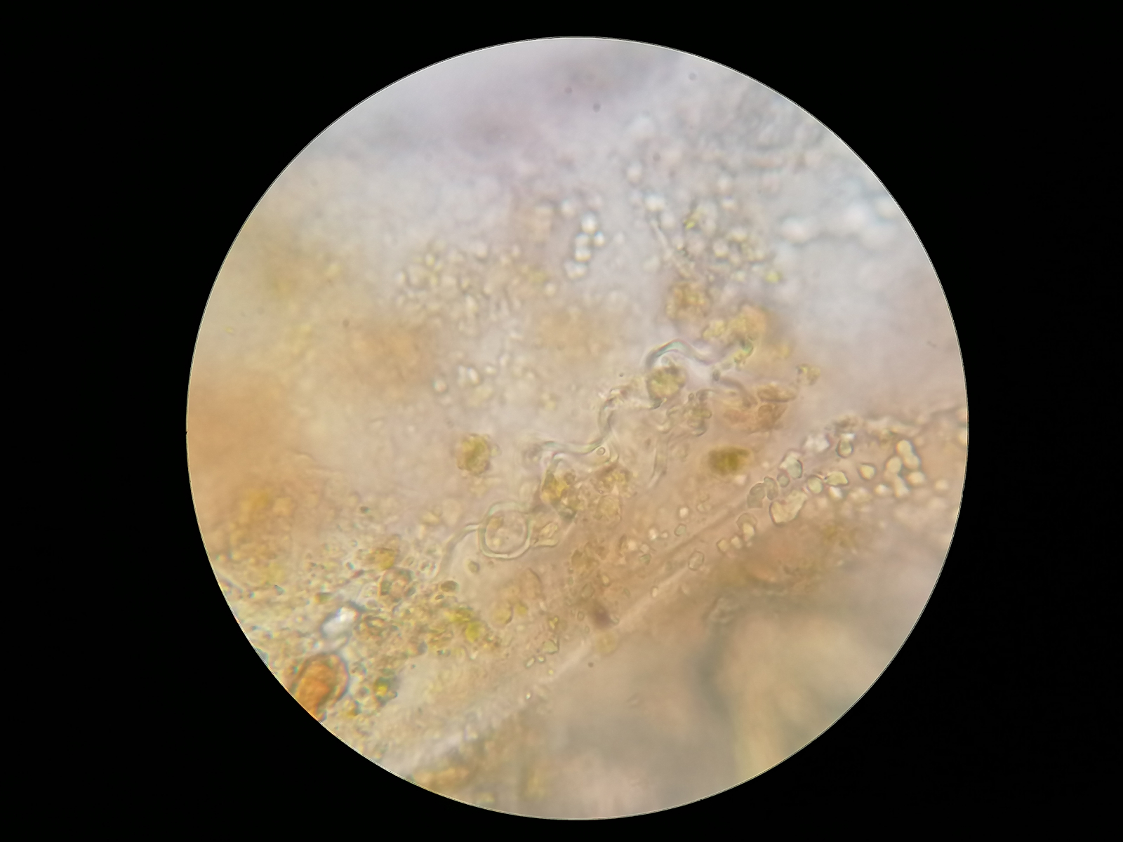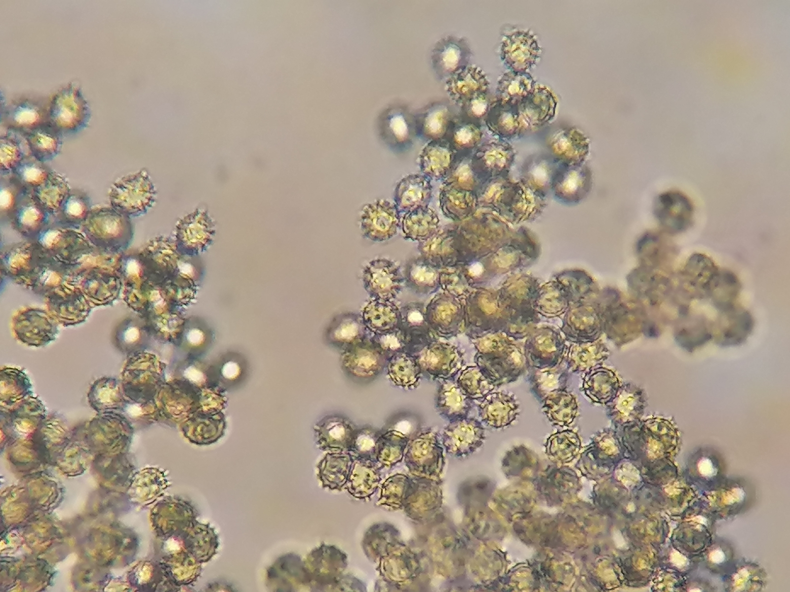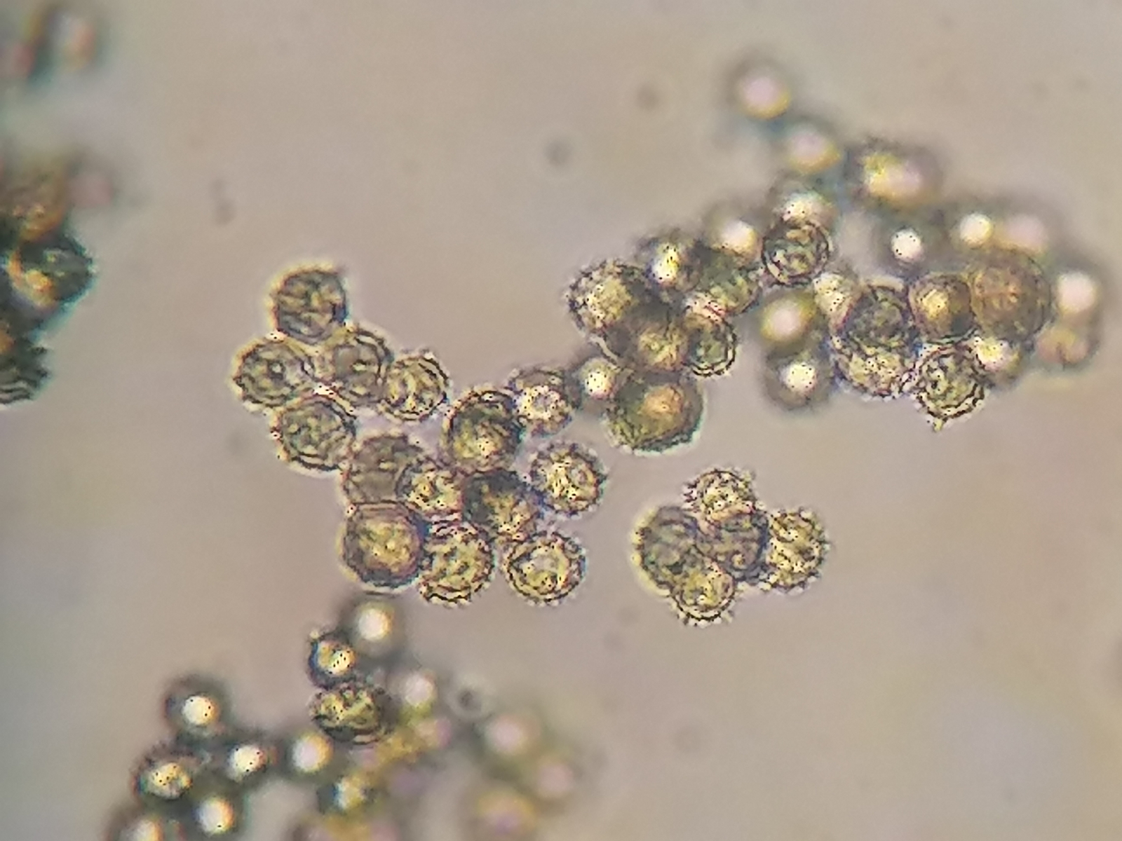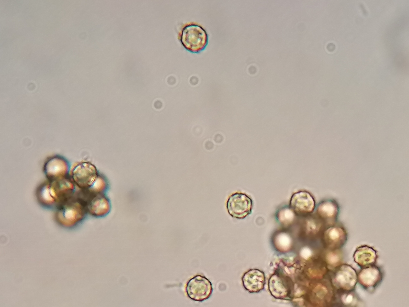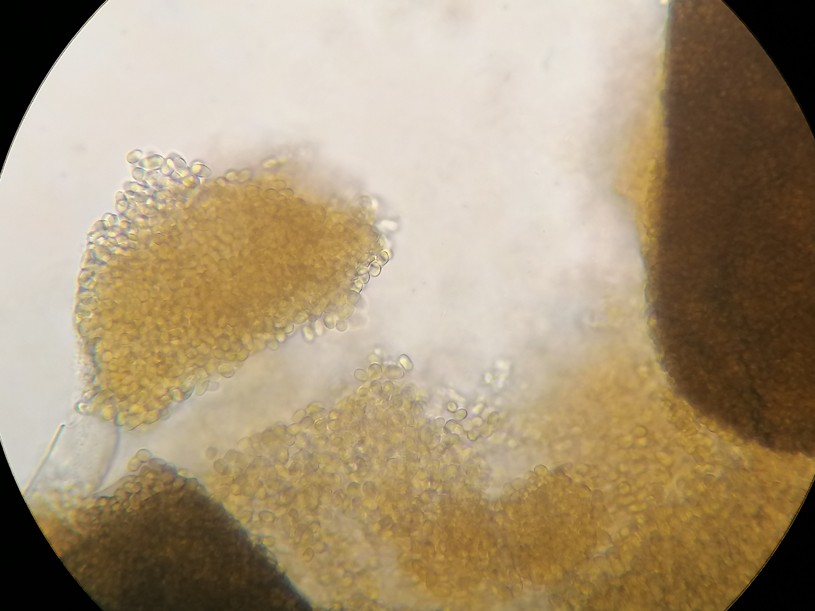 04. Dies sind Sporen von unbestimmten Täublingen, ja, grob, wegen der pixeligen Handykamera