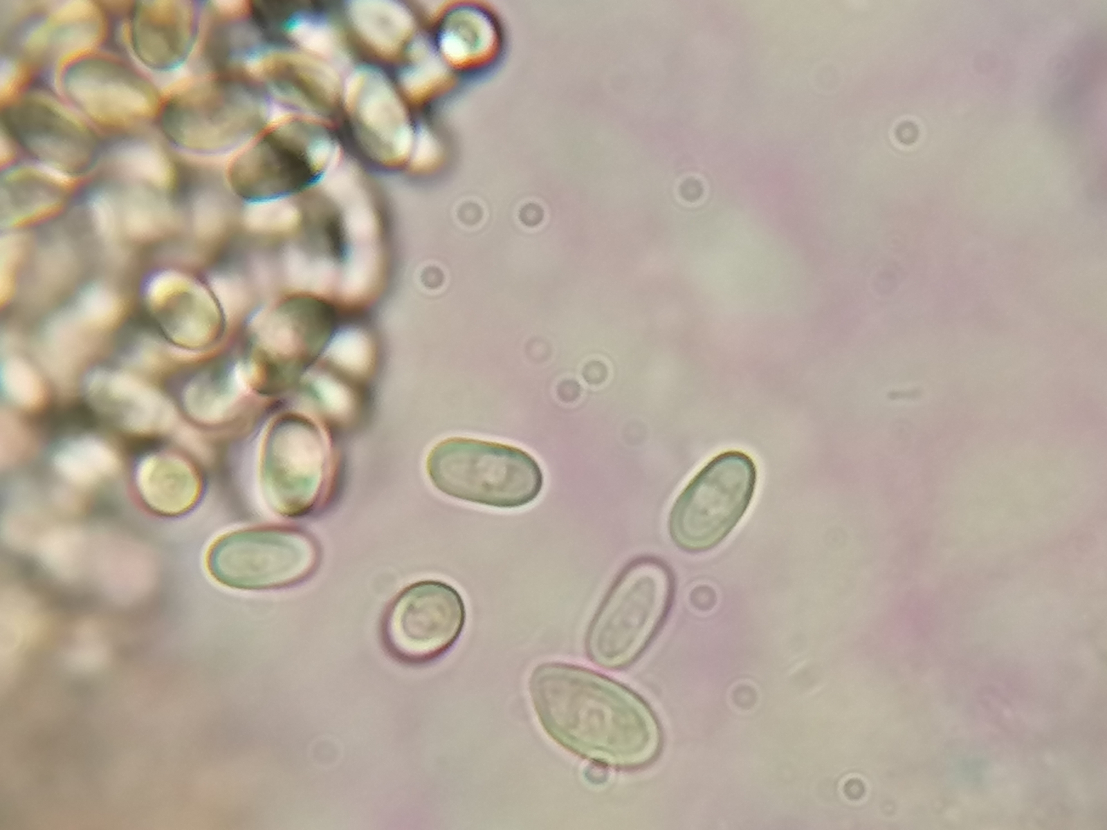 Fotos mache ich immer noch mit dem Handy durchs Okular, nachdem wir nun für einige Tausender eine neue Heizung einbauen lassen mussten, wird das auch noch eine Weile so bleiben. Sporen messe ich noch nicht, da mir das noch ein bisschen zu hoch ist.
