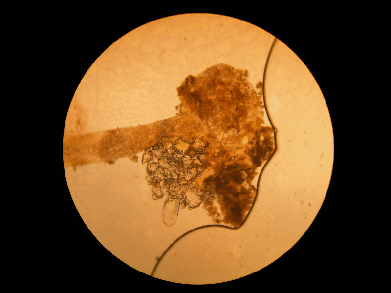 und hier... im spitzen Ende des Stäbchens, kristalline Strukturen. Sieht aus, als habe man einen Glasstab zerbrochen.