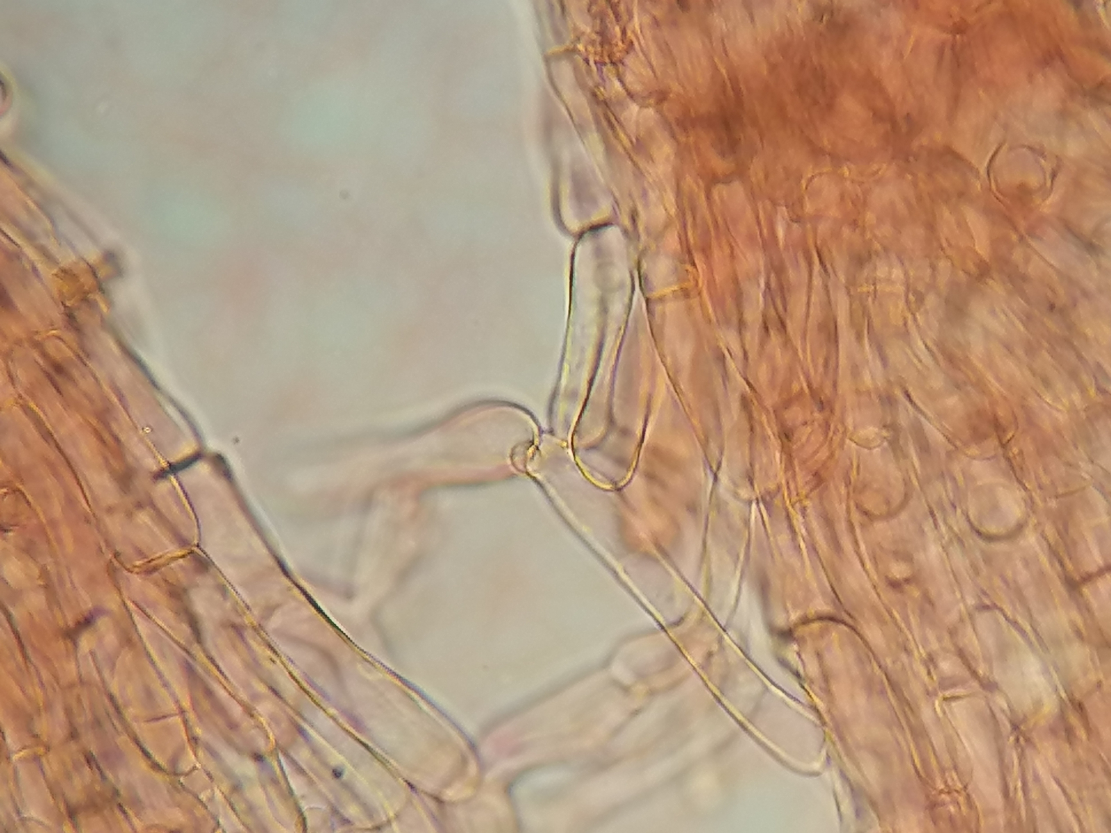 Auf dem Alten Friedhof hatte ich diese Laccaria sp. mitgebracht. Und zum Üben habe ich einfach mal ein bisschen daran herummikroskopiert.