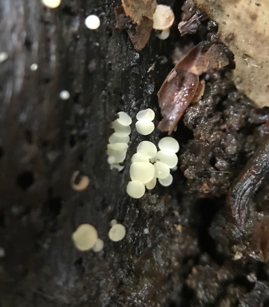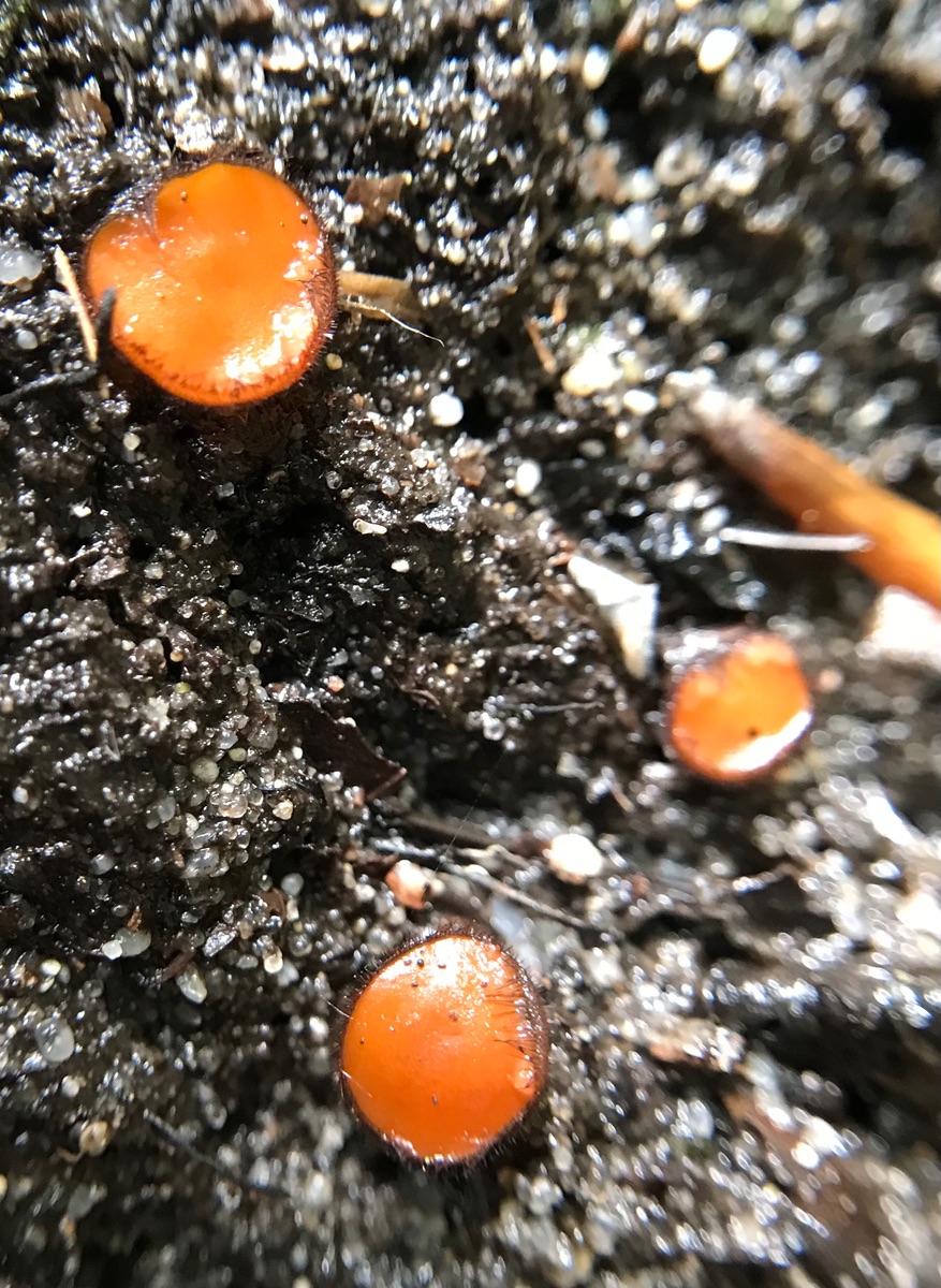 ….. und auf dem Rückweg nochmal Scutellinias mit Schleimpilz in einer Buchenholzspalte