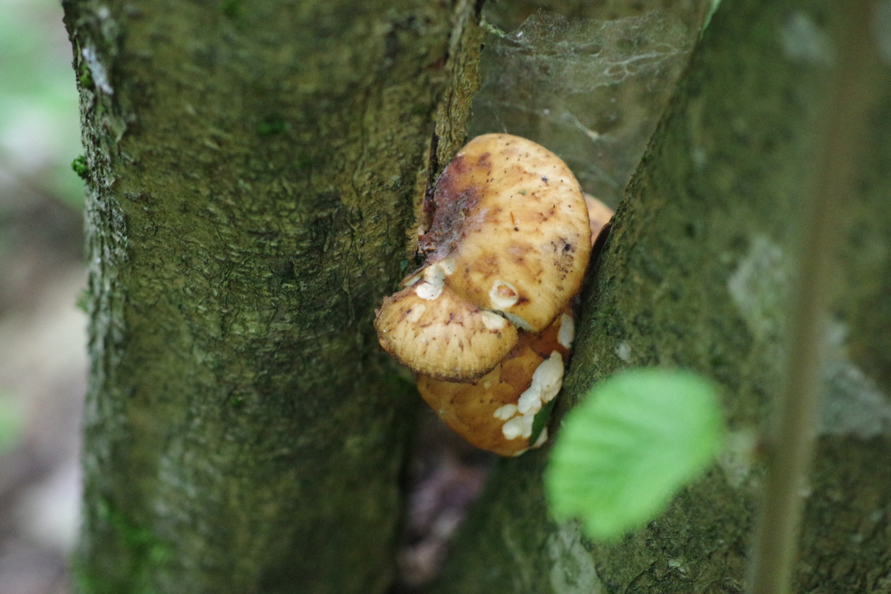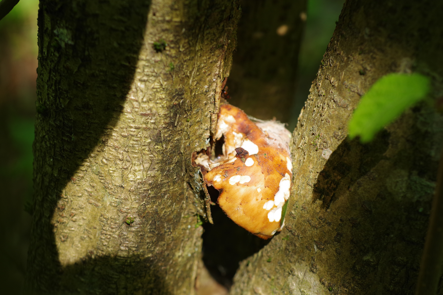 Die Wuchsweise ist immer noch komisch, aber gerade bei fruchtkörpern an "hängenden" ästen verzichtet die Art eher mal auf die Ausbildung eines richtigen Stieles.