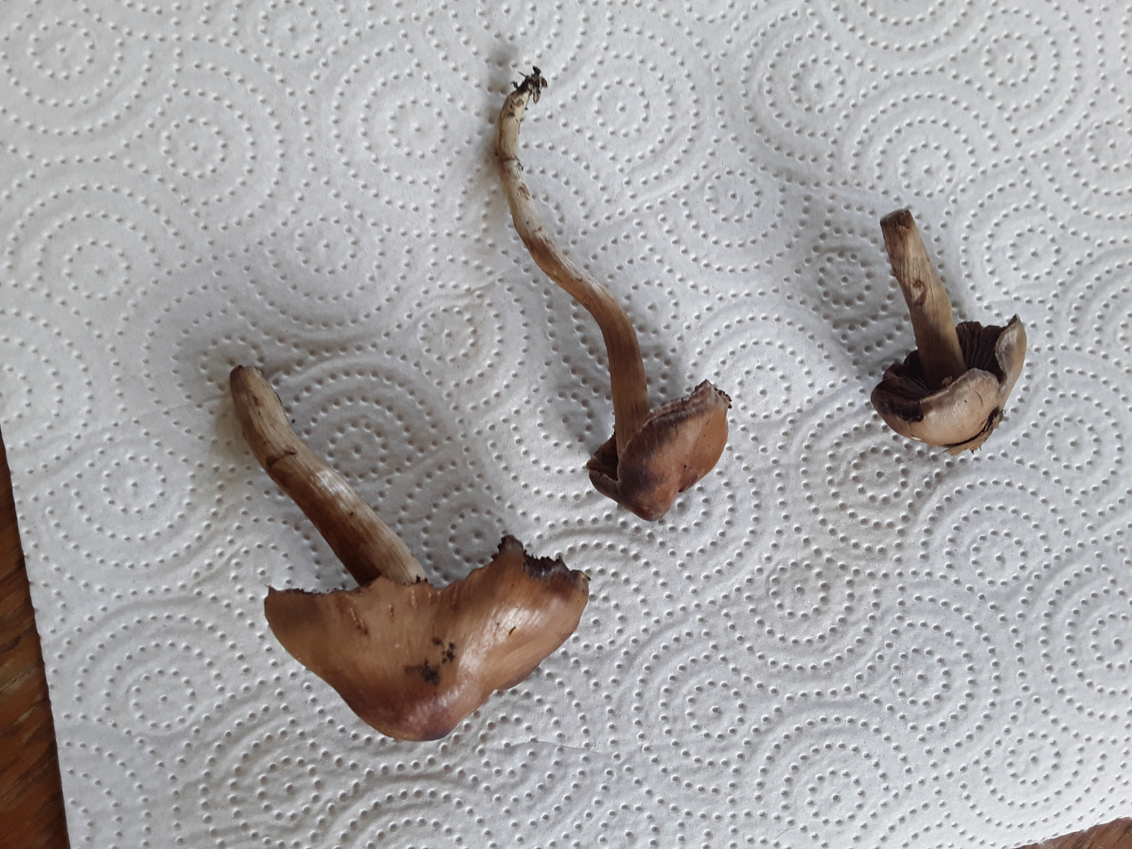 In einem Mischwald fanden wir büschelig gewachsen diesen Pilz.