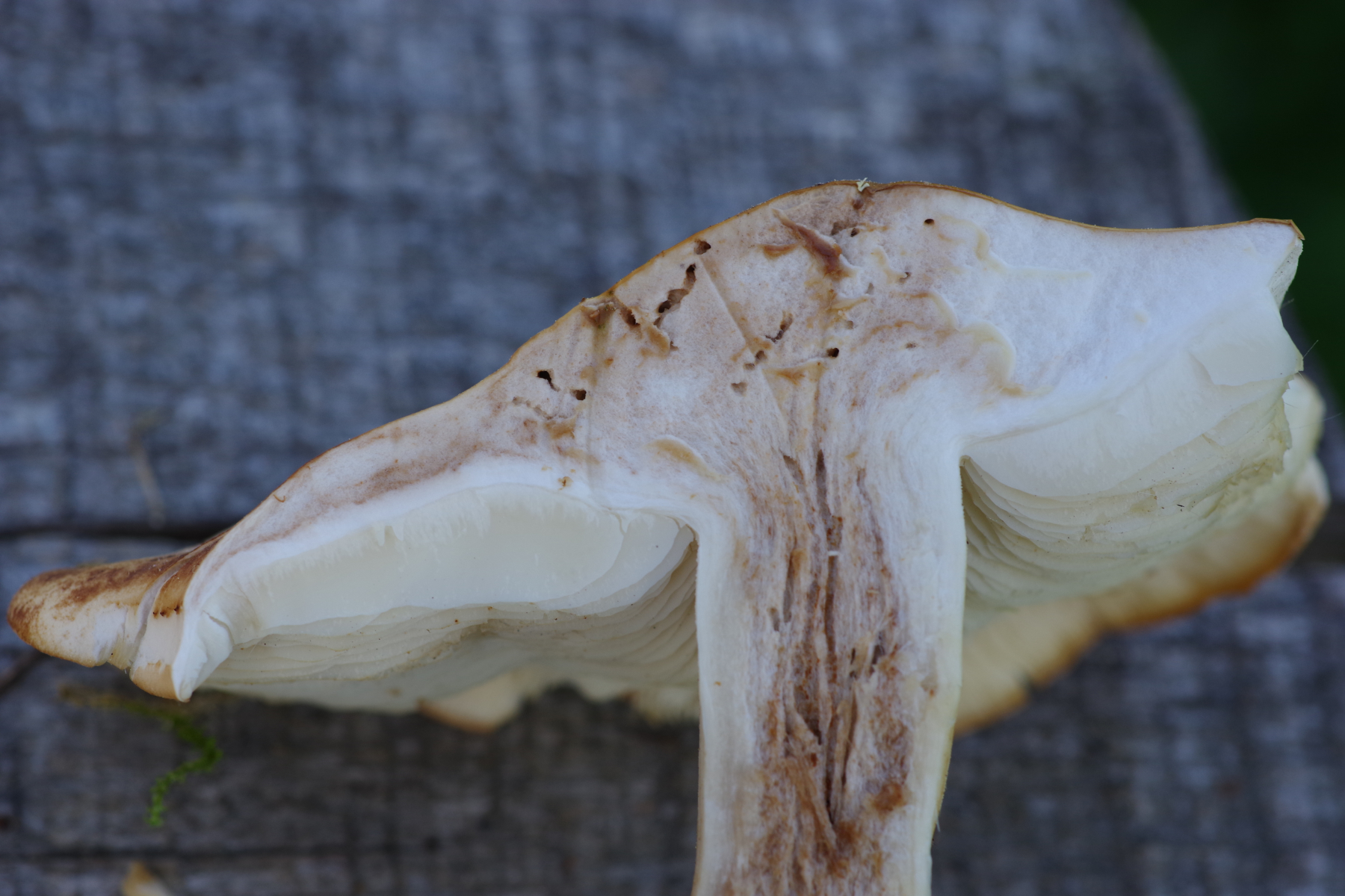 Für mich war beim Maipilz immer ein wichtiges Kriterium, dass das Fruchtfleisch dick ist im Vergleich zu den Lamellen.