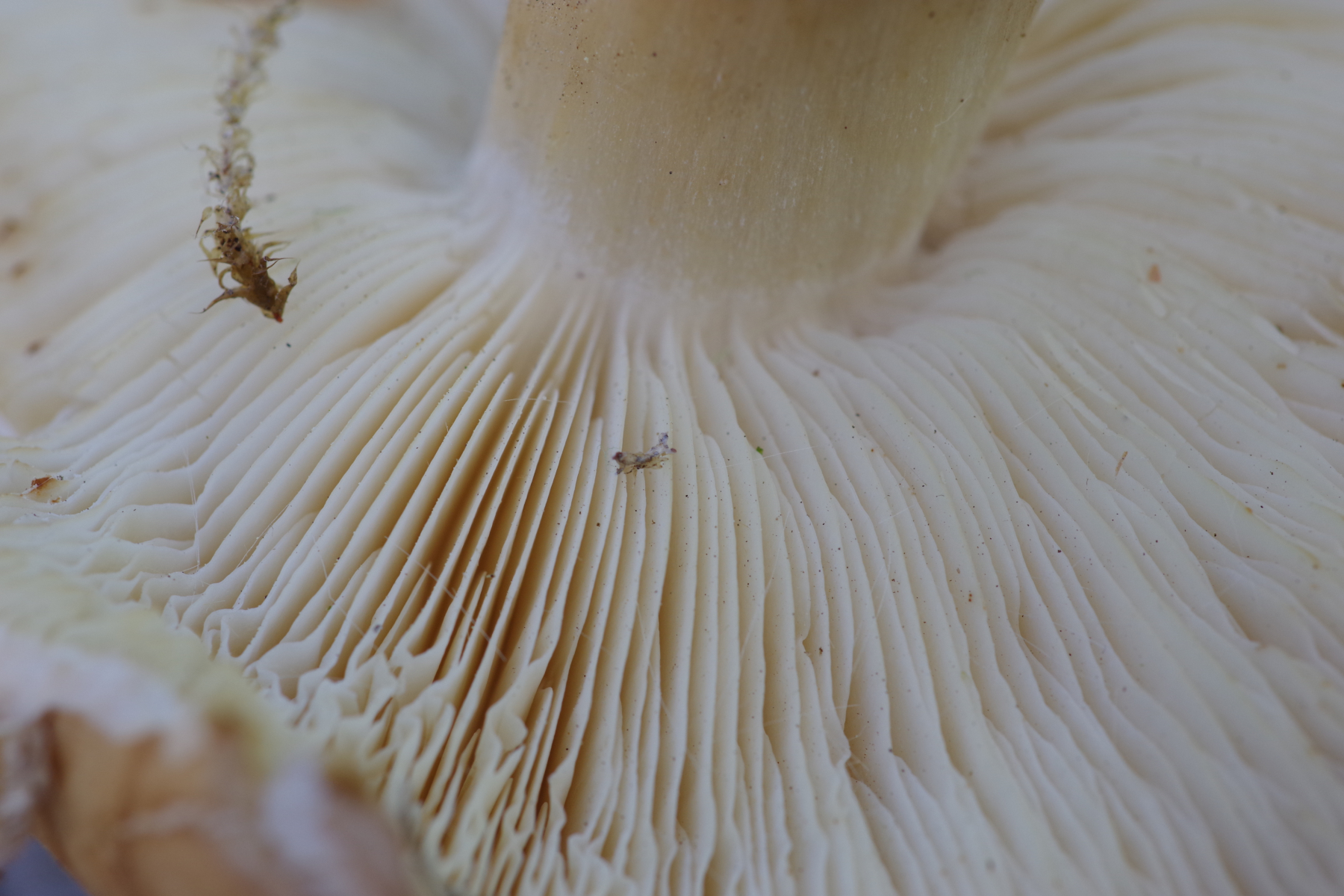Auch die Lamellenform dürfte auf das Alter der Fruchtkörper und die Wuchsform zurückzuführen sein.