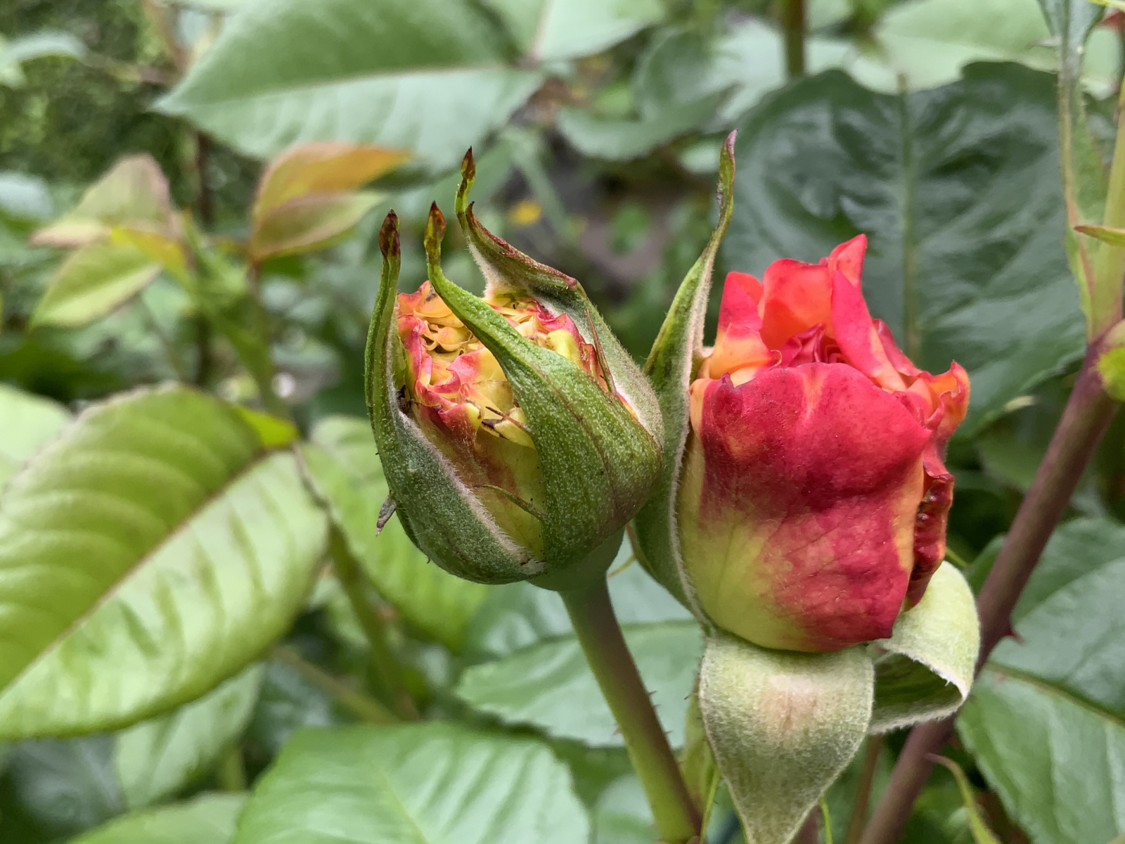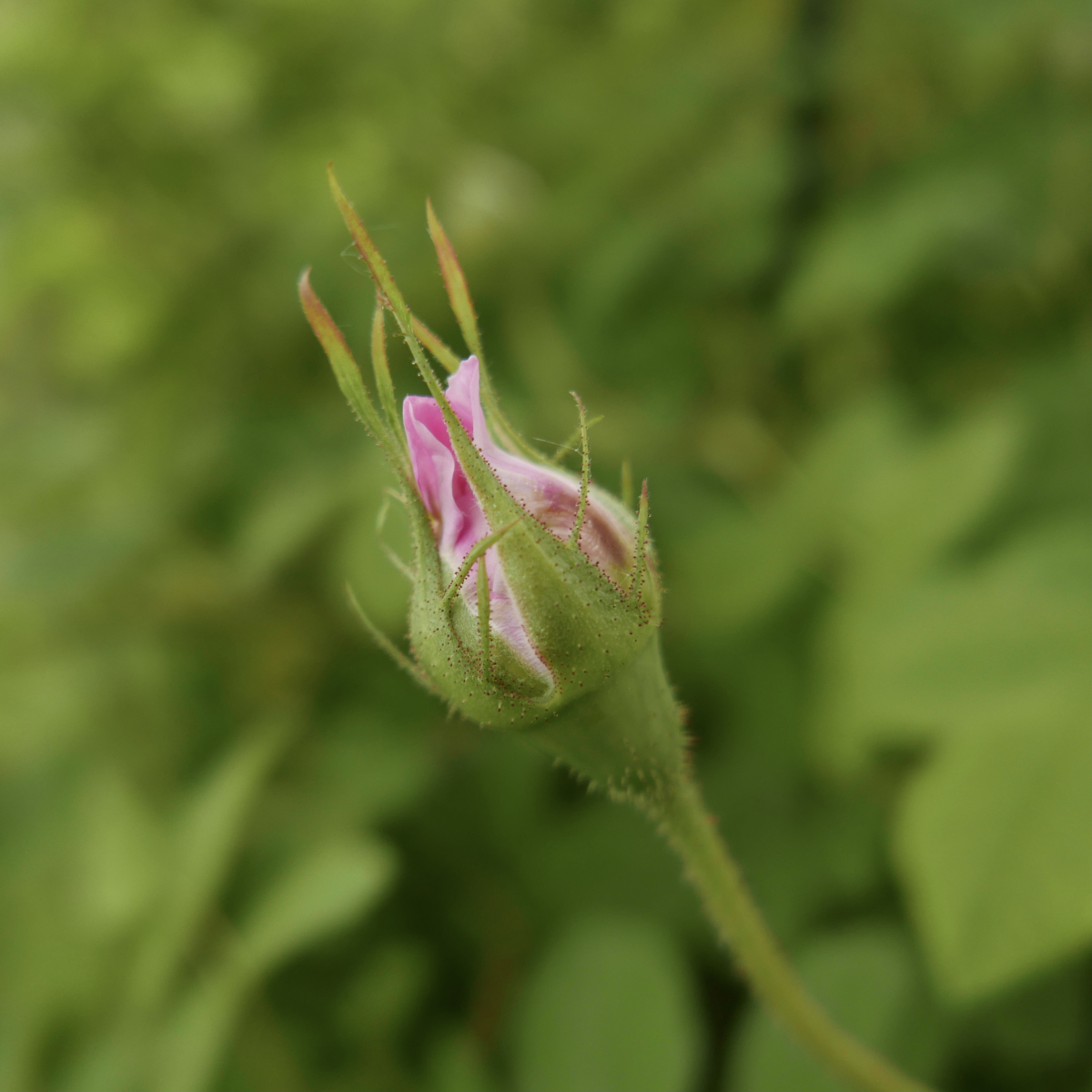 Eine meiner Lieblingsrosen, die Alba-Rose Blush Hip kletterte sowieso nicht daran hoch. Ihr kurz vor dem bersten stehenden Knospen versprechen ein baldiges Dufterlebnis.