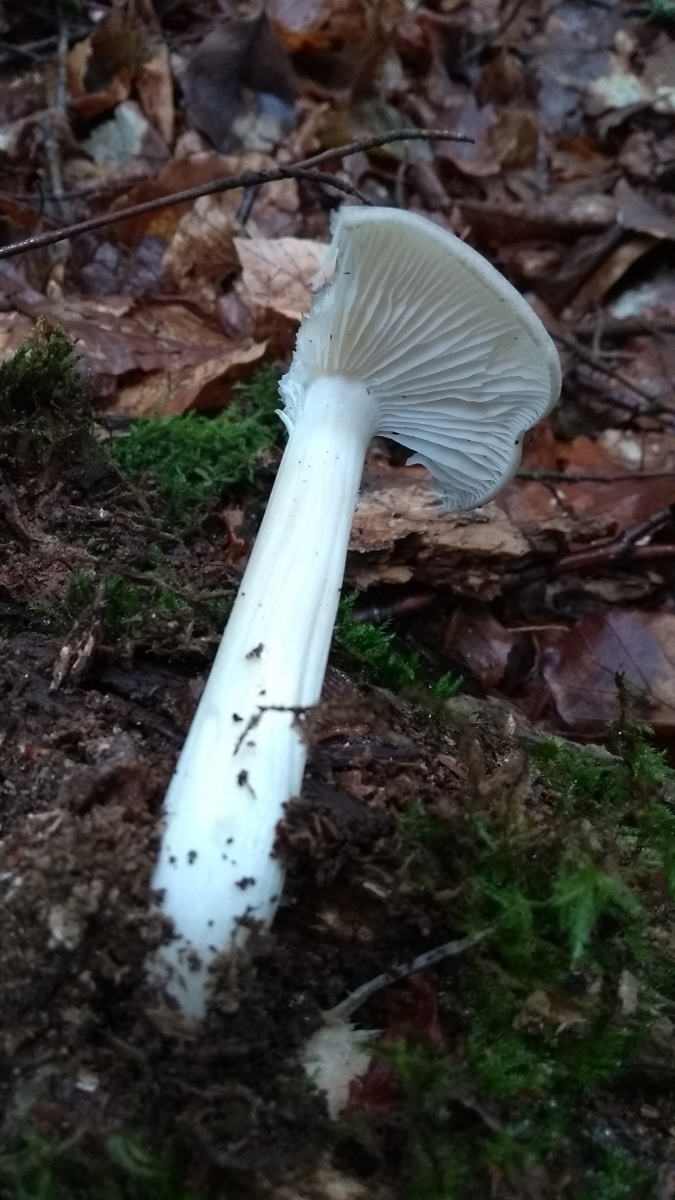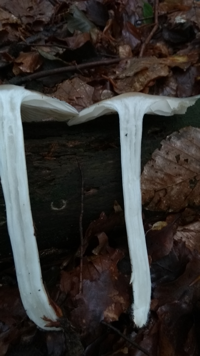 heute im Buchenwald fand ich einige Pilze der gleichen Art in verschiedenen Alterszuständen. Der Fundort lag mitten im (Buchen-)Wald. Einige Fruchtkörper schienen direkt auf dem Waldboden auf dem Blattstreu zu wachsen, auffällig viele aber unmittelbar bei Totholz, bei dem ich am ehesten auch Buche vermute. Direkt auf dem Holz schien keiner der Fruchtkörper zu wachsen. Die Hüte der alten Exemplare waren nach oben gekrempelt. Die Hutoberfläche erschien glatt und trotz des feuchten Wetters nicht (schnecklingsartig) schmierig. In allen Alterstufen erschien der Hut hygrophan. Der Geruch war eher dezent, pilzig. Der Stiel war faserig und, wie im Schnittbild erkennbar, hohl oder gekammert. Die Huthaut war nur schlecht abziehbar, Hut vom Stiel kaum zu lösen. Ein Ring war nicht zu erkennen.