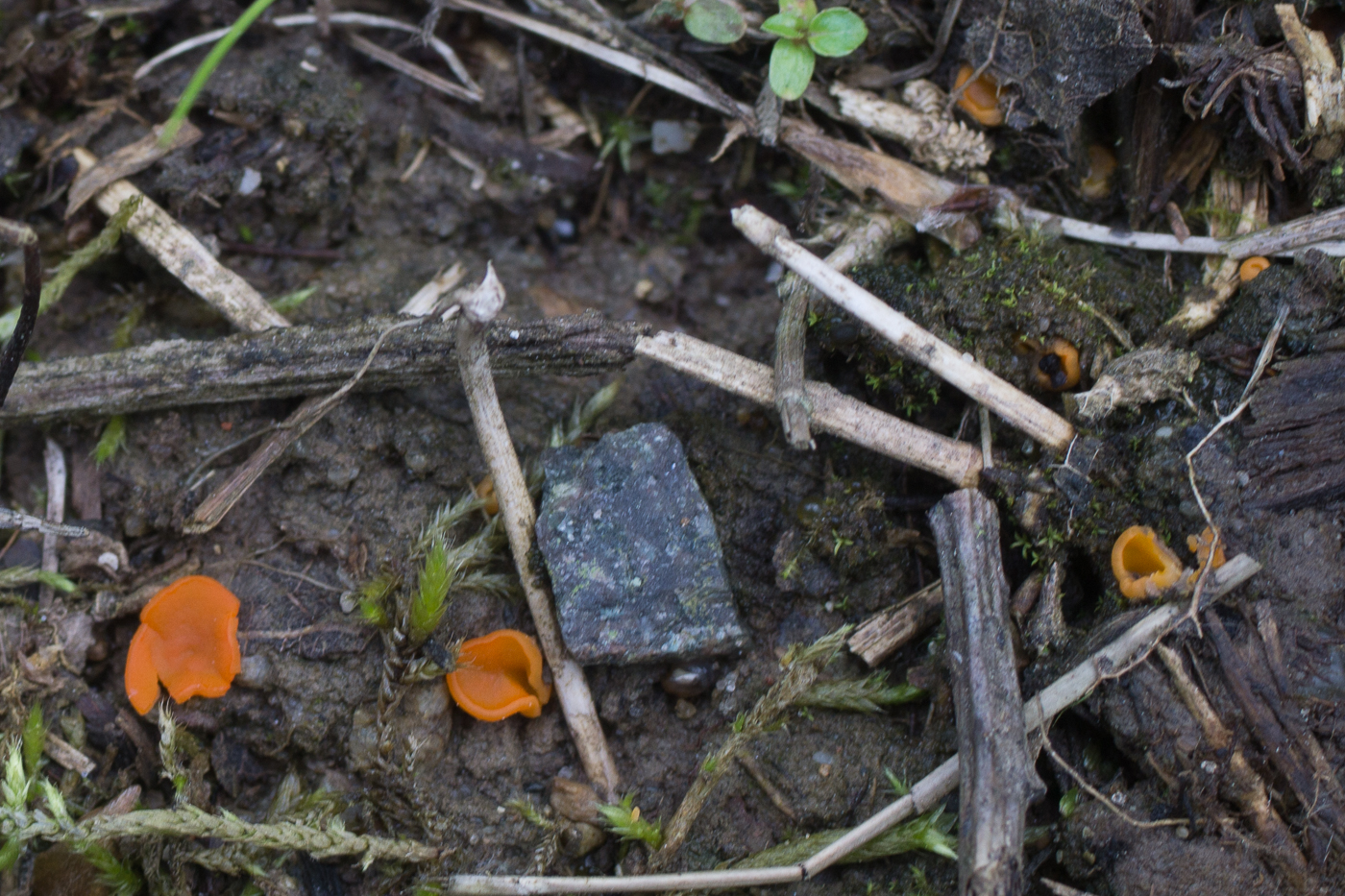 Und diese winzigen roten Pünktchen standen im Moos bei Eiche/Pappel/Birke. Da bin ich jetzt bei Octospora gelandet aber damit habe ich mich noch gar nicht beschäftigt, vermutlich gibt's da noch andere Gattungen?