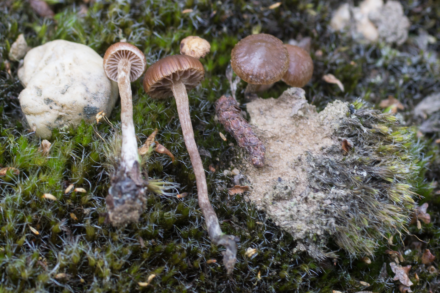 Mein Favorit makroskopisch wäre ja Deconica montana gewesen. Dafür sprechen Standort (Pioniermoose), fehlendes Velum, eher rundlicher Hut ohne Buckel.