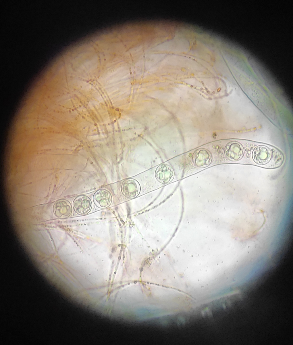 Die Paraphysen sind an ihrem Ende auch so verbogen wie in dem Link. Reicht das um die Gattung/Art zu bestätigen? Ich habe leider noch kein Baumwollblau falls das gebraucht würde.