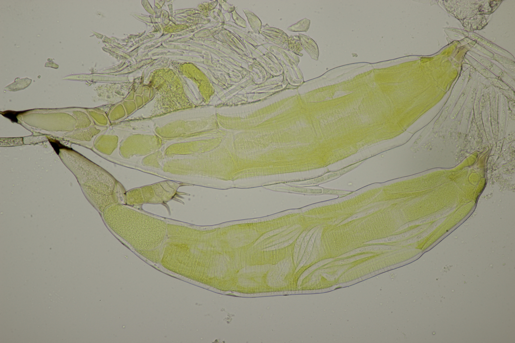 bei der Exkursion im Landschaftspark am vergangenen Donnerstag fand ich auch ein Marienkäferpärchen, bei dem einer der beiden Partner von Hesperomyces virescens befallen war. Im Feld waren die beiden Käfer etwas zu agil, also sind sie erstmal mit nach Hause gewandert und dort sanft entschlummert, bevor es dann unters Mikroskop ging.