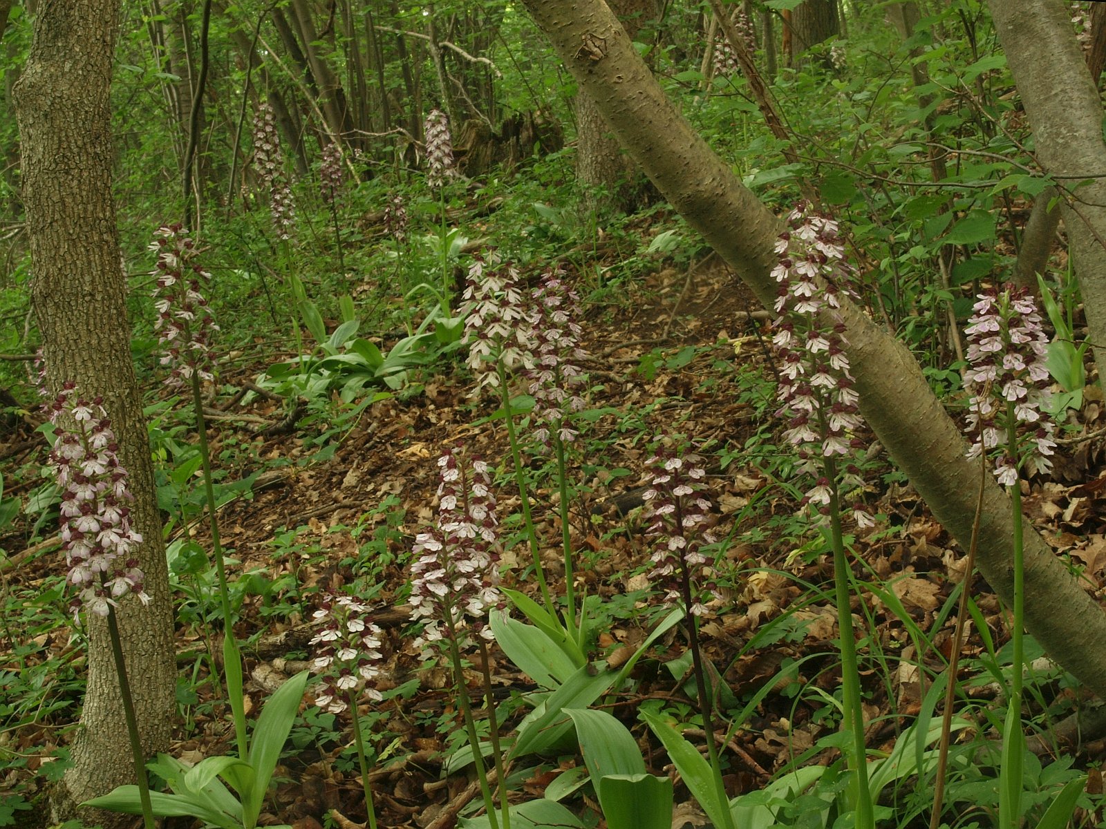 Das Pupur- Knabenkraut (Orchis purpurea) war in sonnigen Lagen schon verblüht aber überraschte mit tollen Exemplaren im Wald