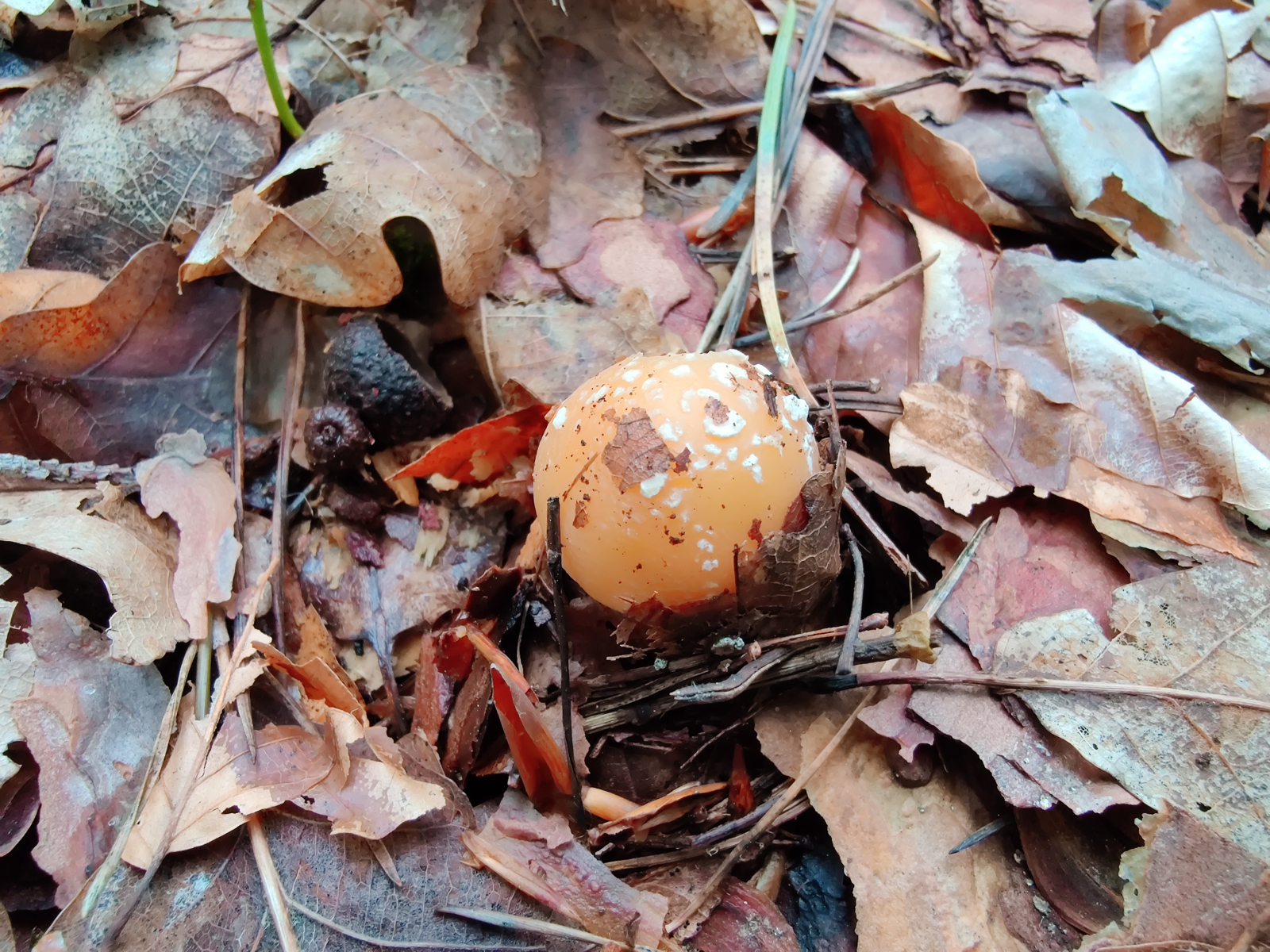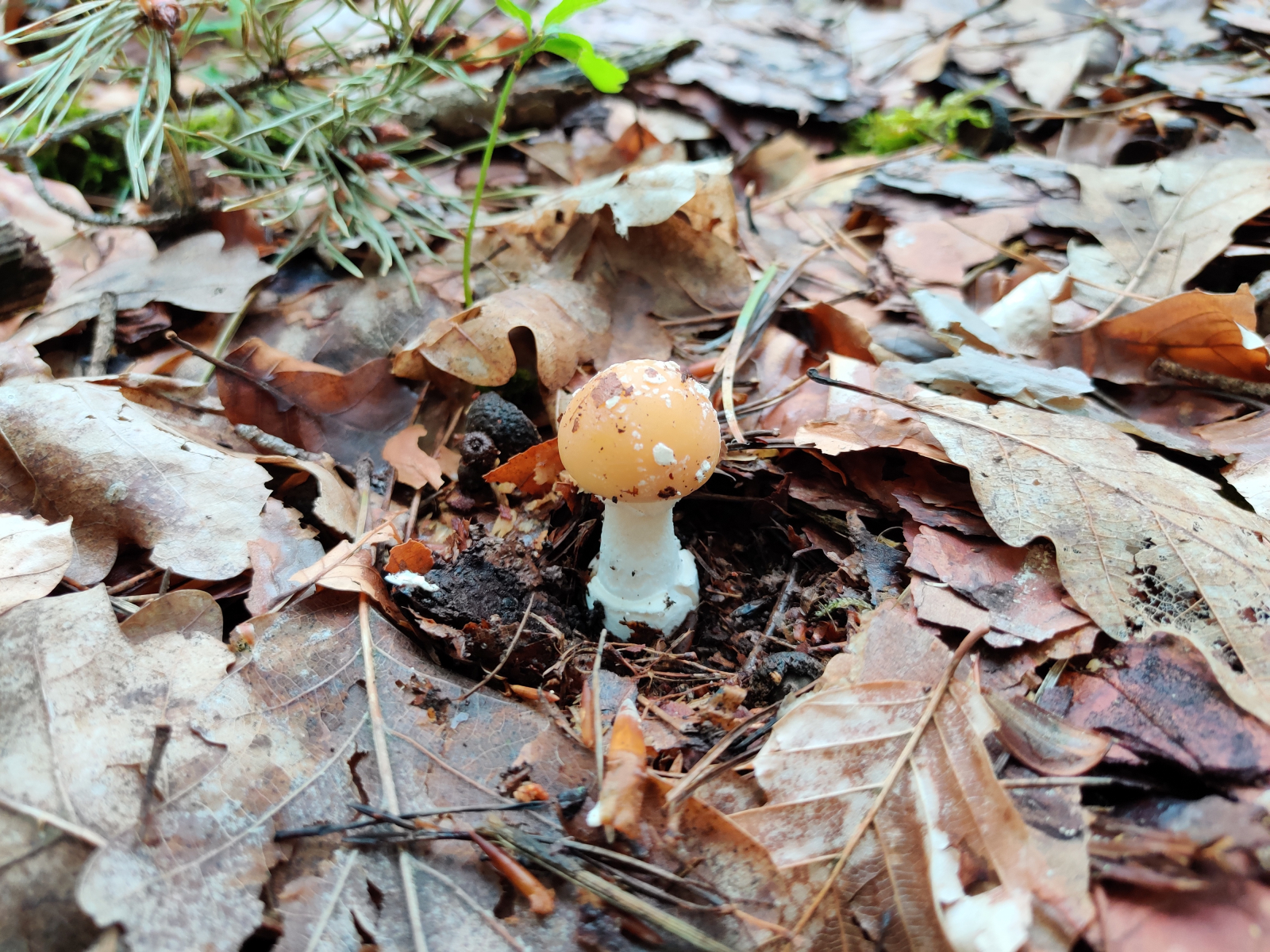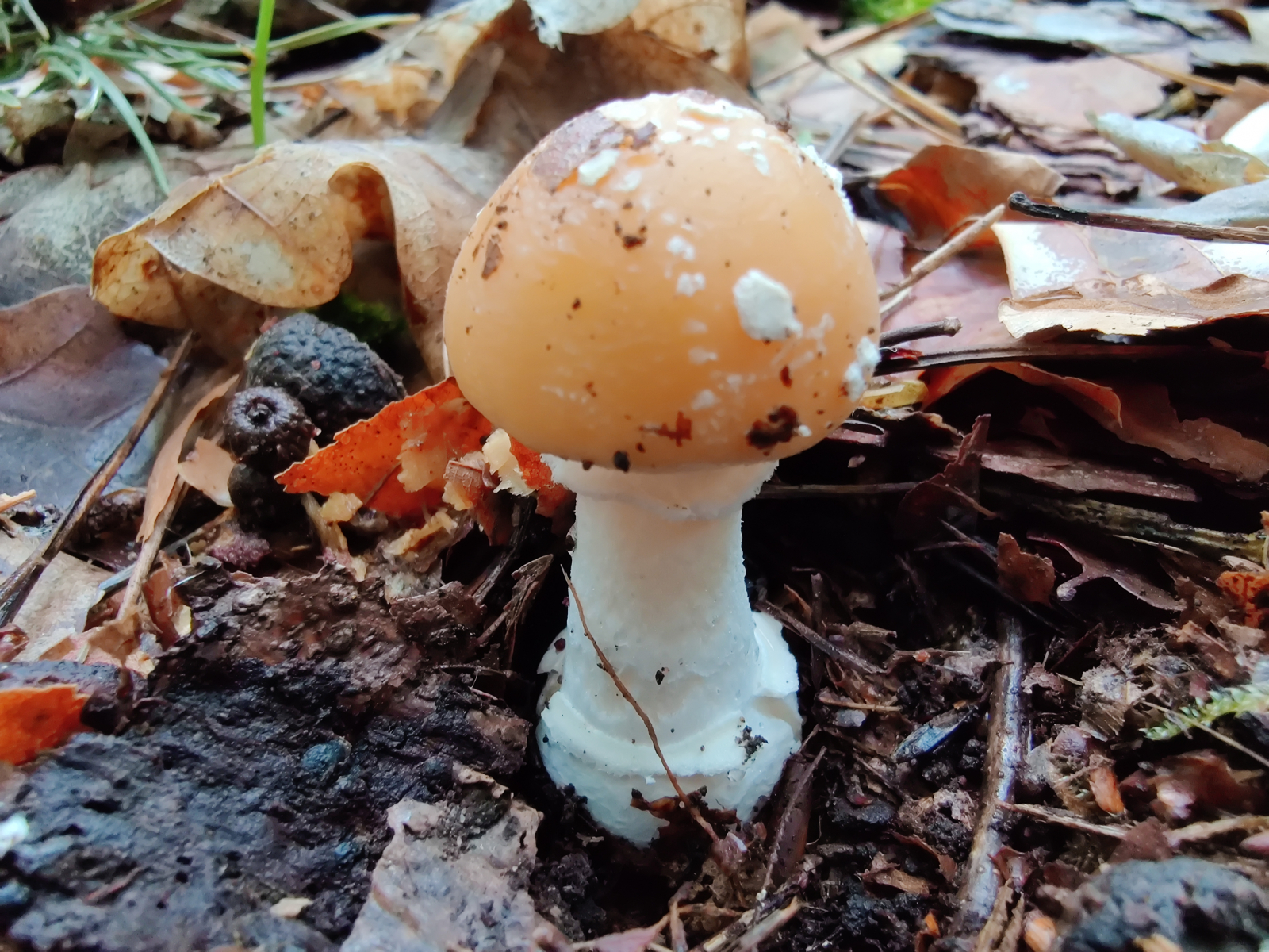 vergangenes Wochenende habe ich folgenden Fruchtkörper gefunden. Da es der einzige Fund war und sich weit und breit nichts blicken lies, wollte ich diesen Fruchtkörper gerne stehen lassen und nicht weiter untersuchen. Die Angaben sind deswegen sehr dürftig. Der Fruchtkörper war nur wenige Zentimeter groß (~ 4cm) und stand direkt neben einer Kiefer, einige Meter entfernt waren noch Buche und Eiche. Die Farbe war tatsächlich so lebhaft wie es auf den Bildern rüberkommt. Außer dem Narzissengelben Wulstling (Amanita gemmata) fällt mir keine passende Art ein. Was meint ihr, kommen hier noch andere Arten in Frage?