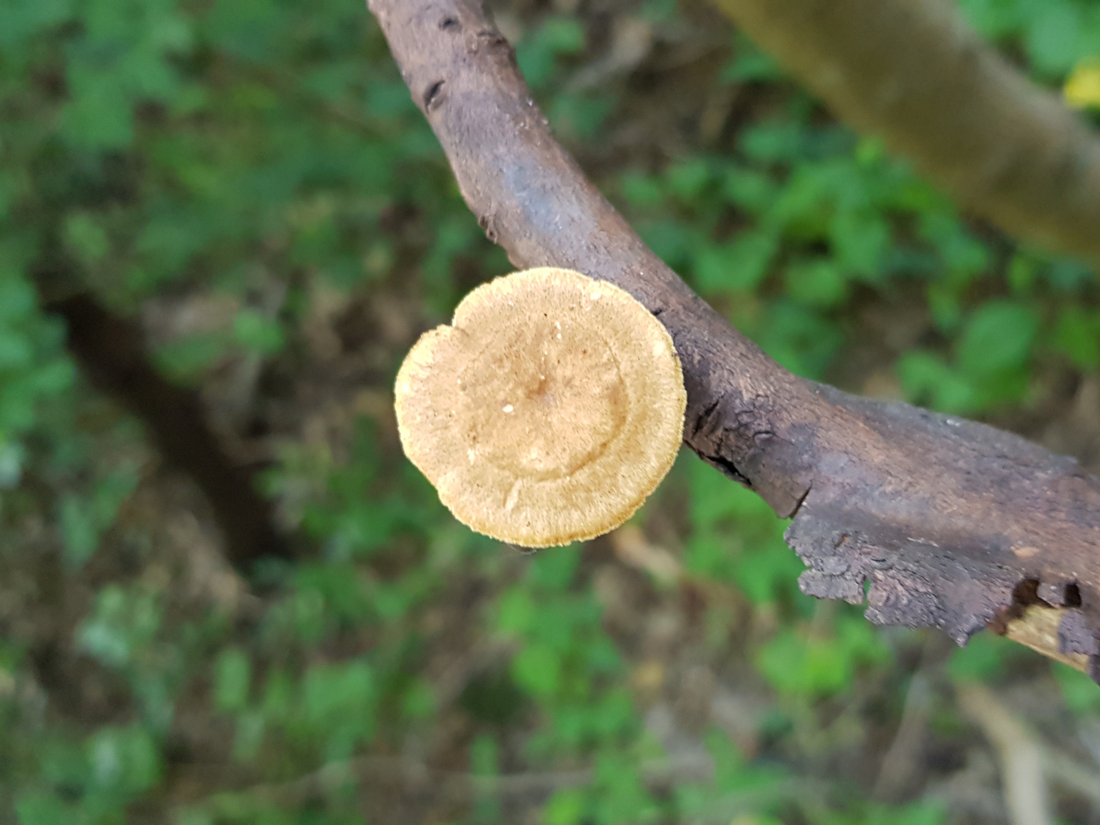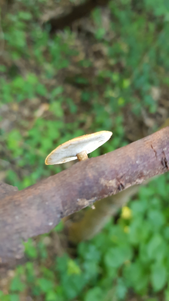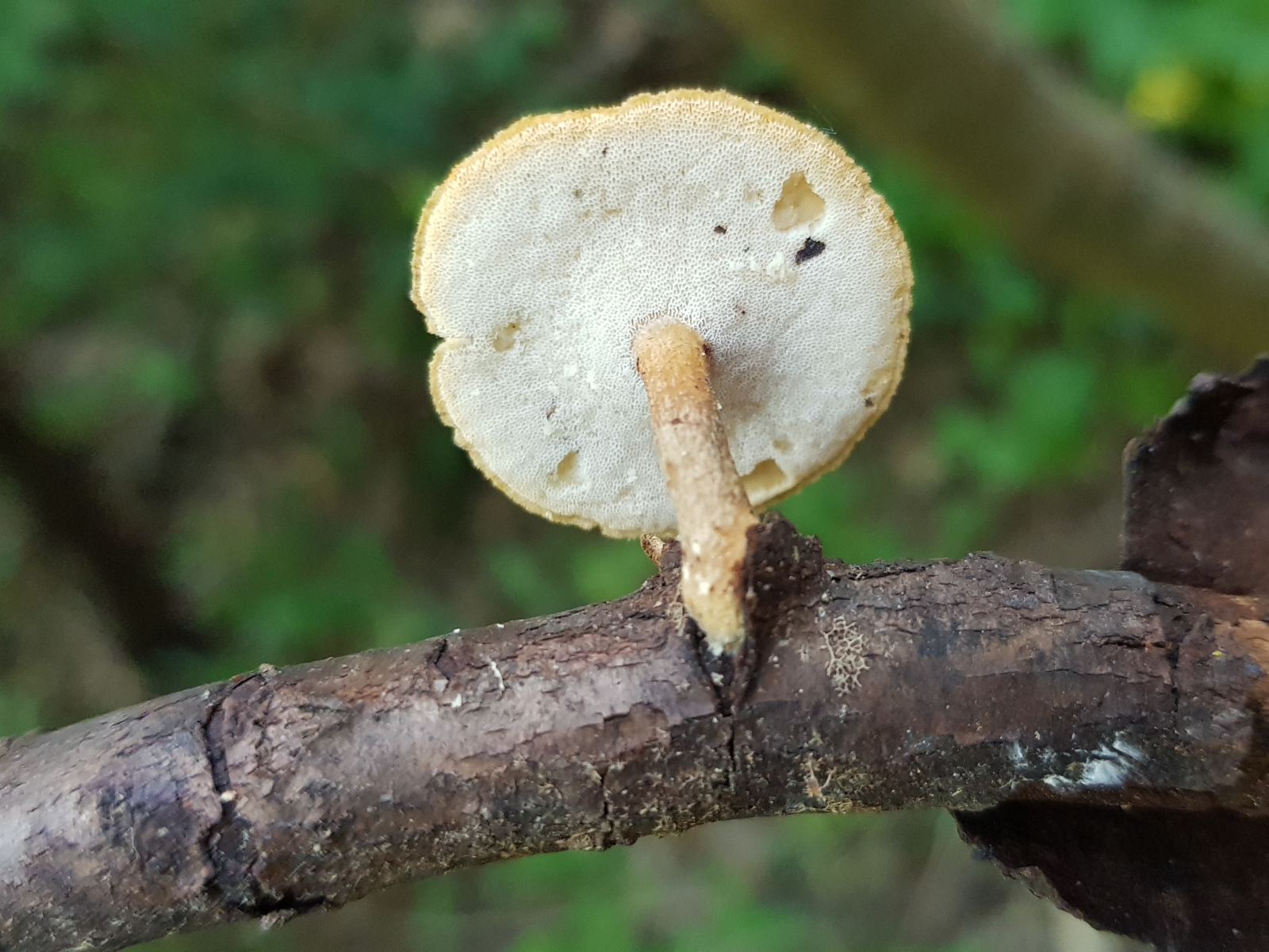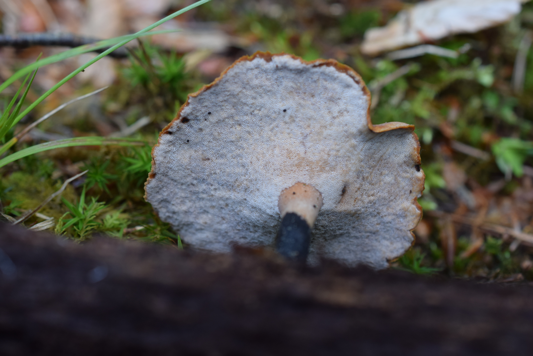 bei Polyporus leptocephalus (ehemals varius) läuft die Porenschicht etwas am Stiel herunter. Der Stiel steht selten mittig und einen bewimperten Hutrand gibt es auch nicht. Insofern würde ich den ausschließen.
