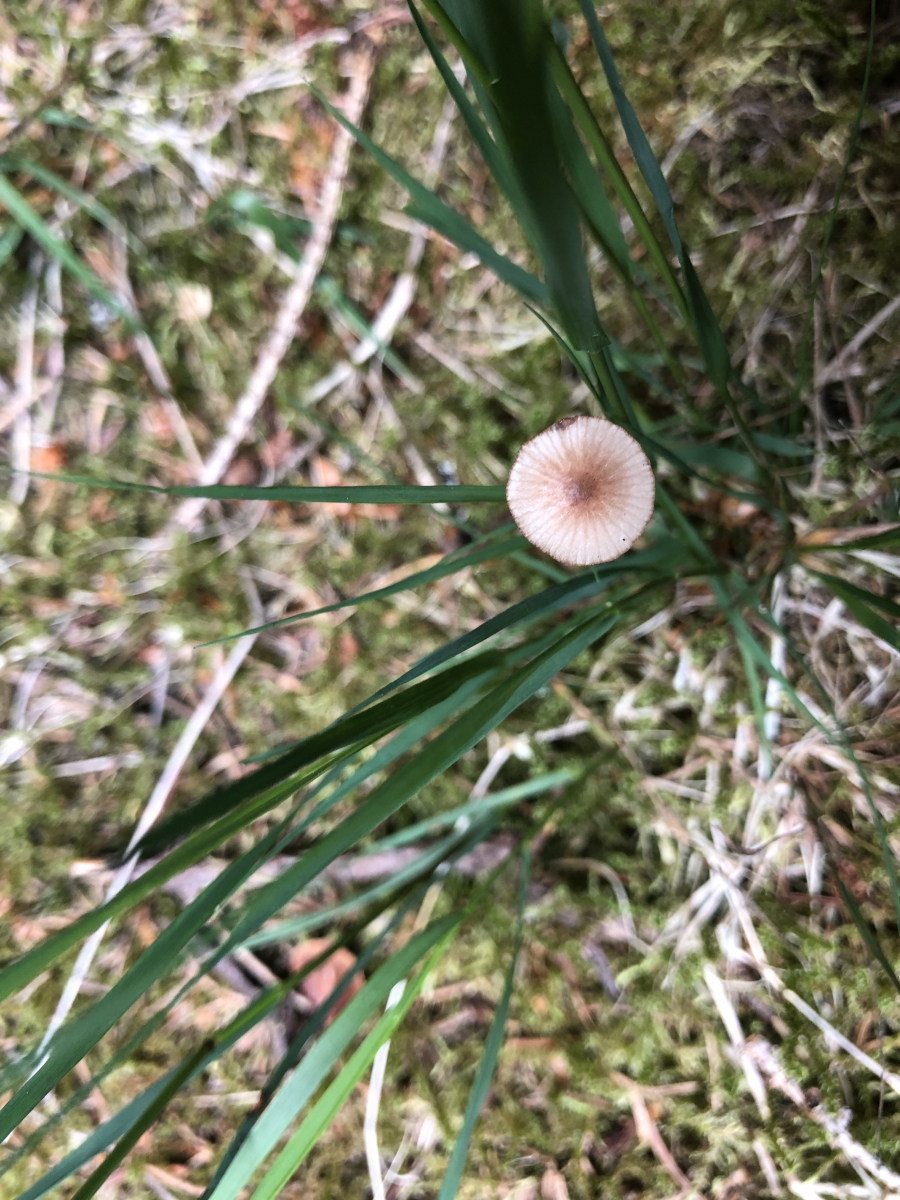 Dann ein winziger Helmling, kleiner als 1 cm Hutdurchmesser mit einem sehr langen Stiel. Aufgrund der dunklen Lamellenschneiden bin ich beim Rotschneidigen Helmling - Mycena rubromarginata.