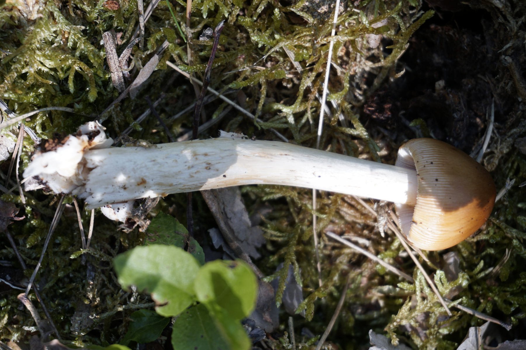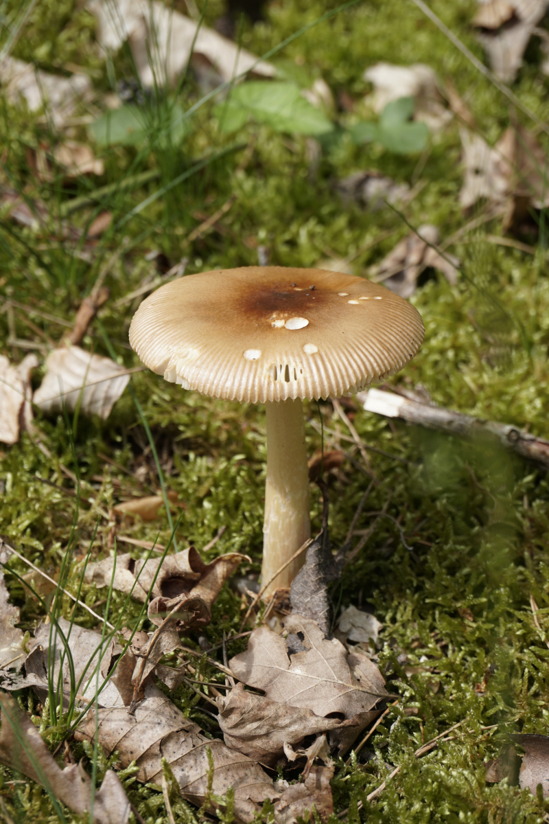 Komisch sieht der aber schon irgendwie aus. So braun - ok, wwenn Amanita fulva irgendwie eintrocknet, ginge das wohl auch, hat dann aber meistens noch einen anderen Farbton drin, der hier fehlt. Aber bei dem ganz jungen fruchtkörper, frisch geschlüpft - der sollte doch nicht so gefärbt sein. Zumal der ein ungewähnlich dickes und weißes Velum hat. Also ich bin hier skeptisch, daß das Amanita fulva sein soll. Schade, daß man nichts von der Scheide sieht, die Struktur vom Universalvelum ist ja schon wichtig bei Scheidenstreiflingen.