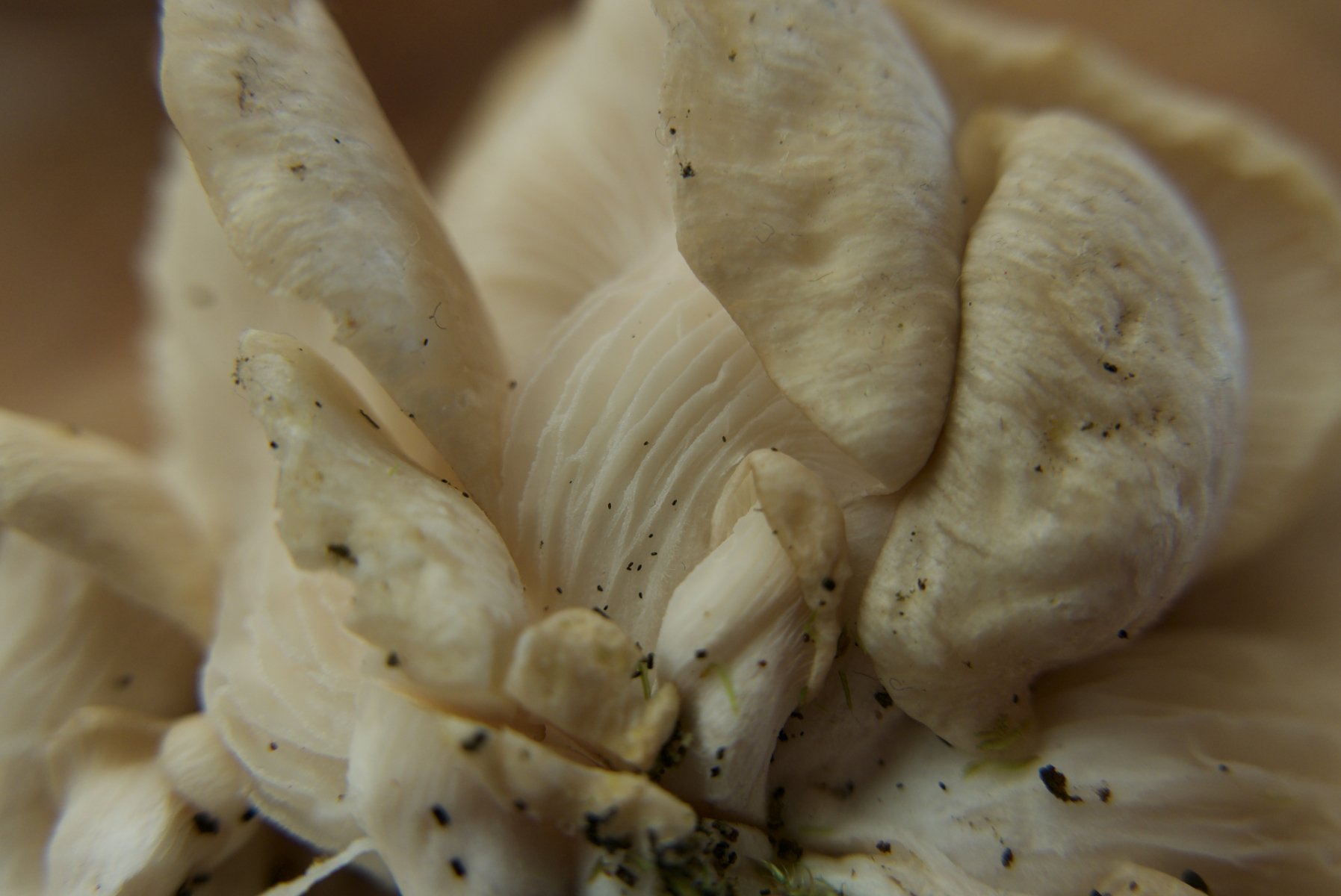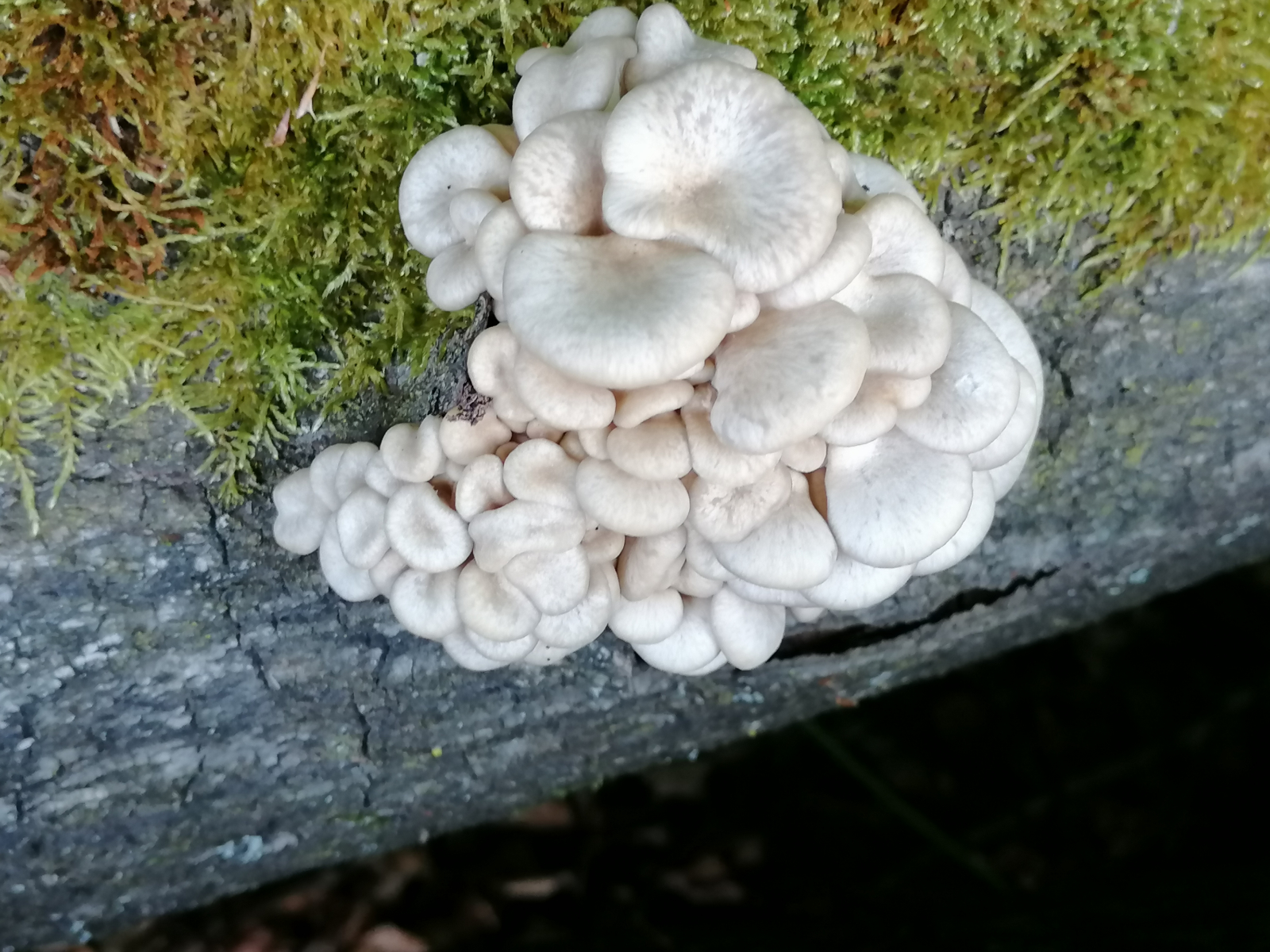 Vorgestern fand ich an einem liegenden Espenstamm drei kleine Austernknäule.