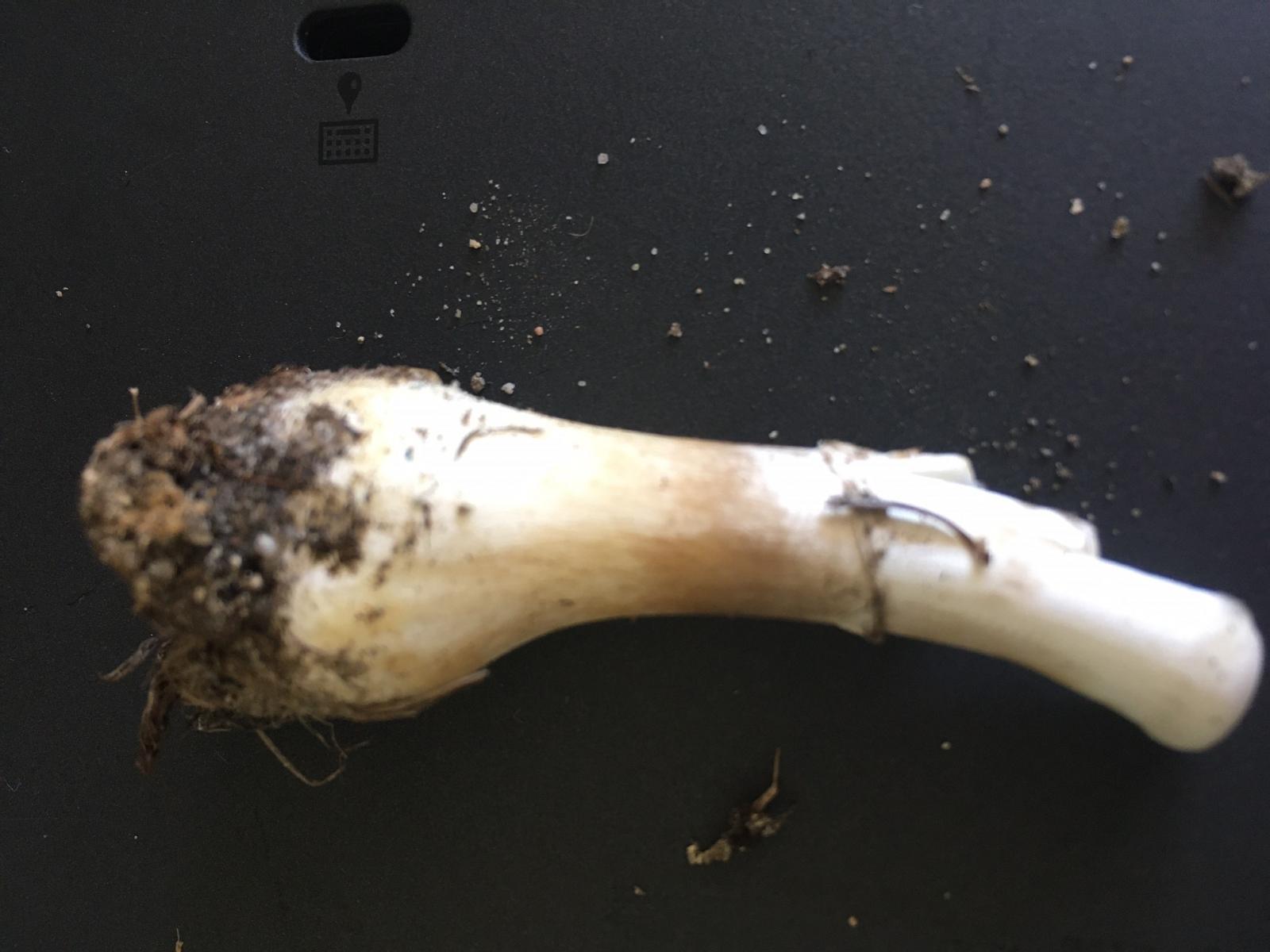 Stiel: unten bauchig, leichte Braunfärbung, bricht brüchig