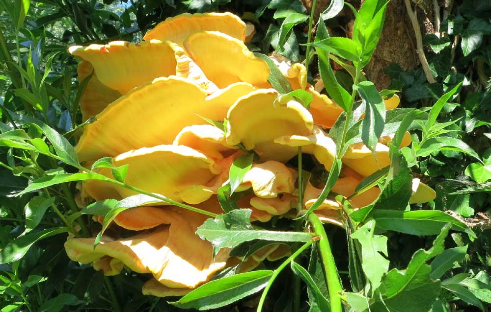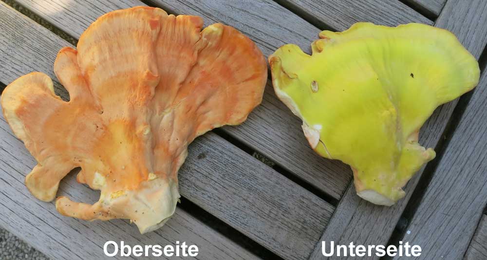 Hallo, es handelt sich glücklicherweise um (je nach Substrat oft) ungiftigen Schwefelporling. Er ist dem Leberreischling (auch Ochenzunge) in etwa so ähnlich wie dem tödlich giftigen Zimtfarbenen Weichporling....