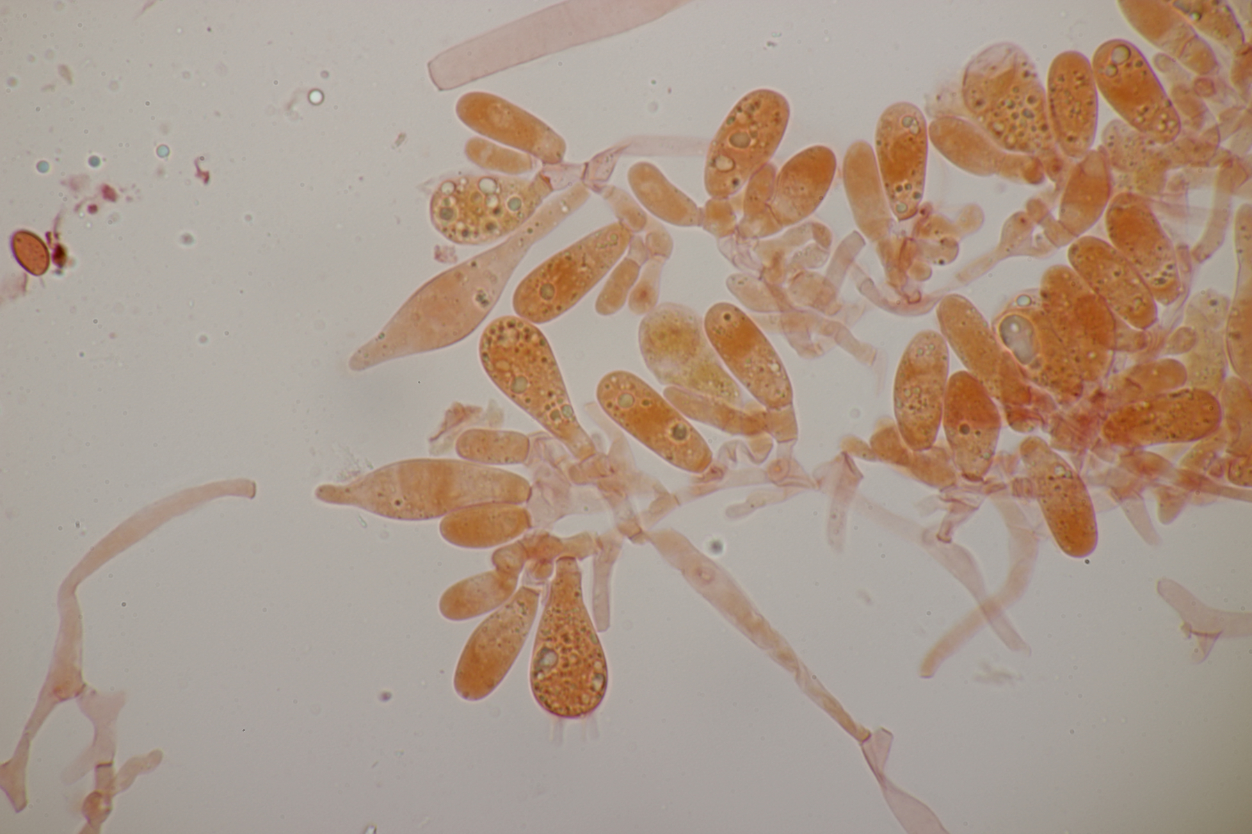 Sporen (11.5+-0.5) µm x (5.6+0.3) µm, Q=2.0+-0.1, (10.5-12.5) µm x (5.2-6.3) µm, Q=1.8-2.3