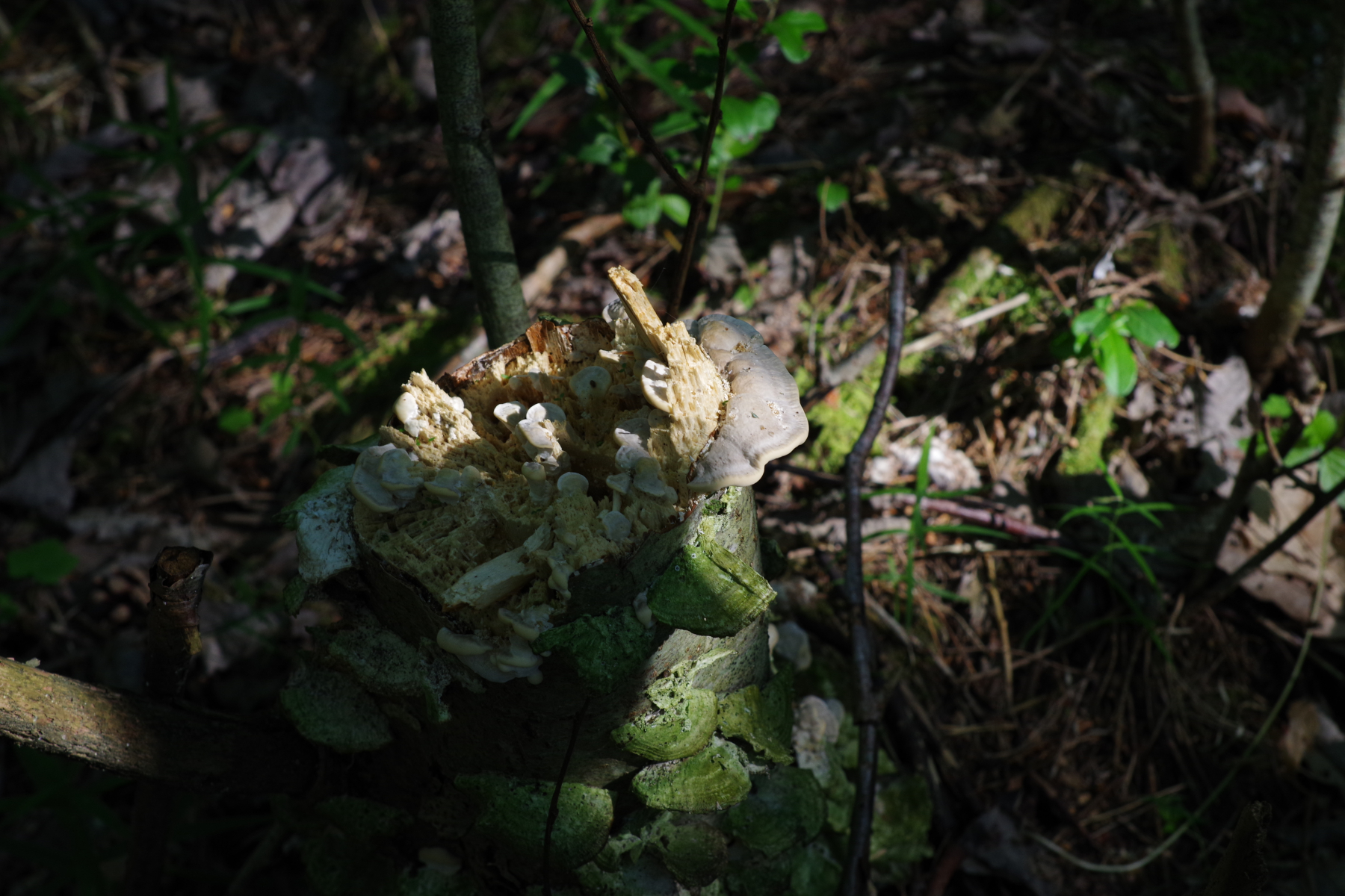 Das Substrat ist Grauerle, tot, sowohl am Stubben als auch am abgebrochenen Stamm.