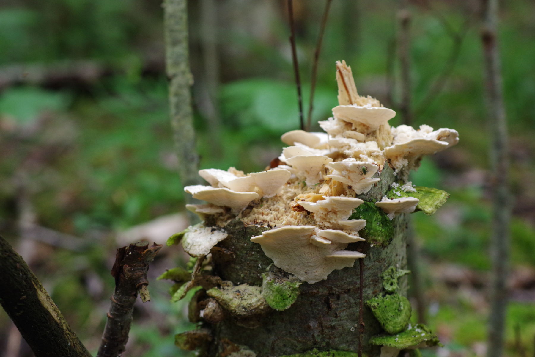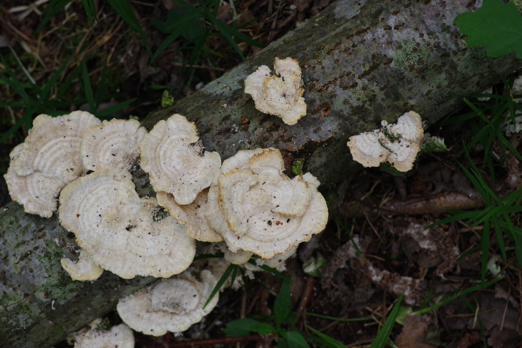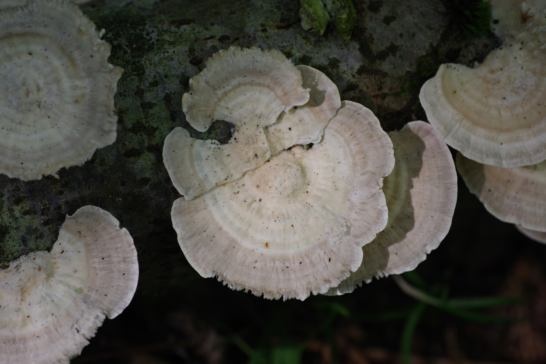 eine Tramete, die ich in alt für Schmetterlinge gehalten habe, fängt jetzt an zu wachsen. Gar nicht so schmetterlingshaft. Zwischenzeitlich dachte ich an T. pubescens, aber da passen die Merkmale auch nicht.